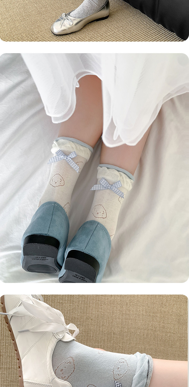 봄 여름 어린이를위한 힐 활 중간 튜브 스택 양말 얇은 어두운 패턴 강아지 한국 스타일 Ins 스타일 더블 레이스 양말스토어 가기