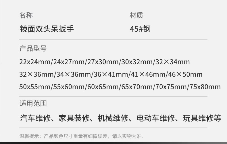 제조업체 도매 미러 더블 헤드 렌치 오픈 엔드 렌치 부티크 포크 렌치 다기능 미러 오픈 엔드 렌치스토어 가기