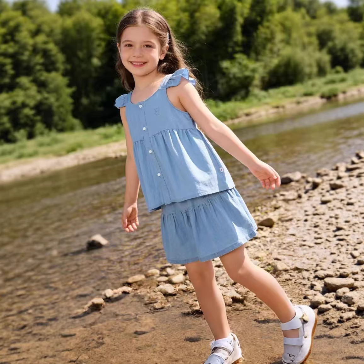 소녀 반바지 여름 새로운 도착 텐셀 데님 컬롯 빅 보이 걸스 아우터 얇은 넓은 다리 바지 웨스턴 스타일 여름 원피스