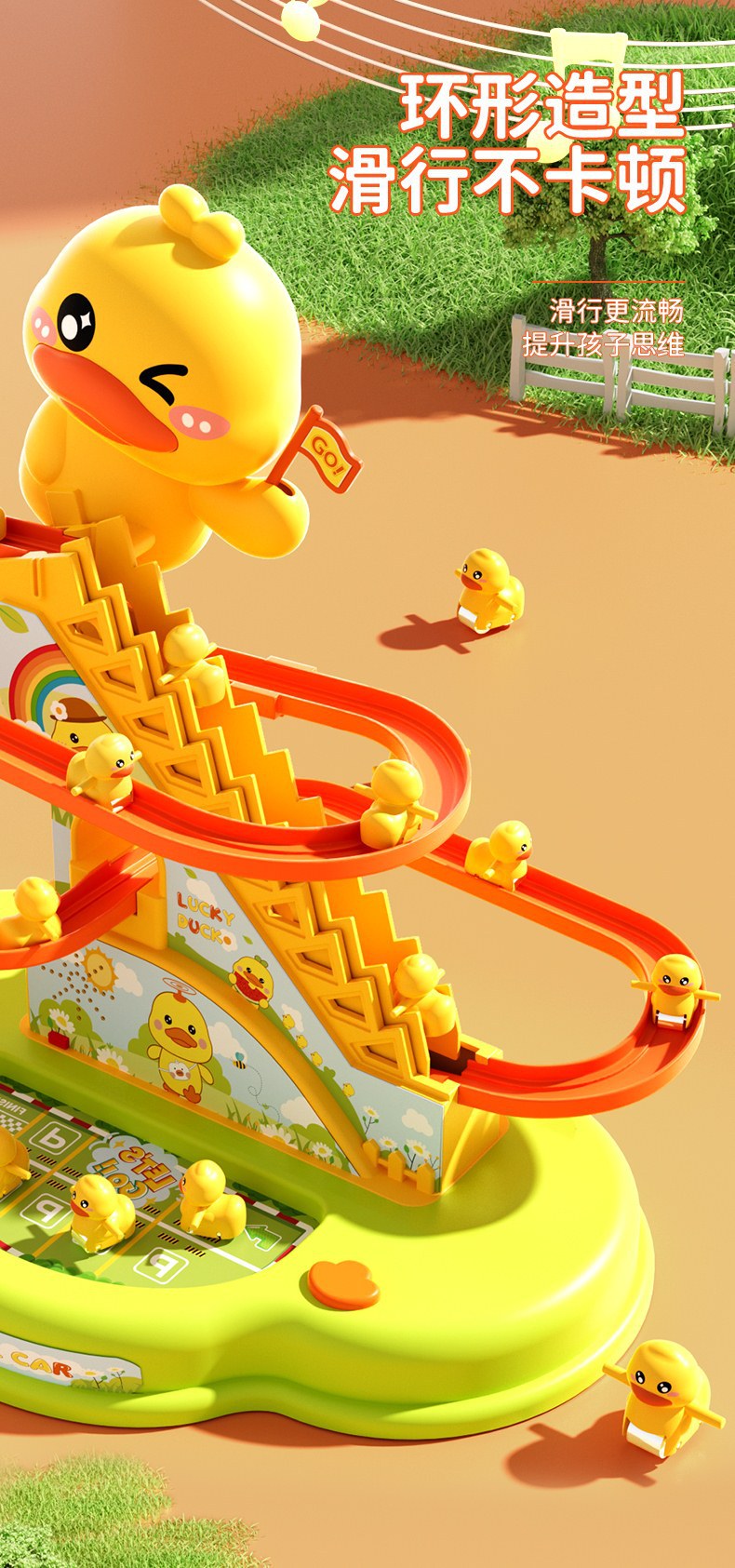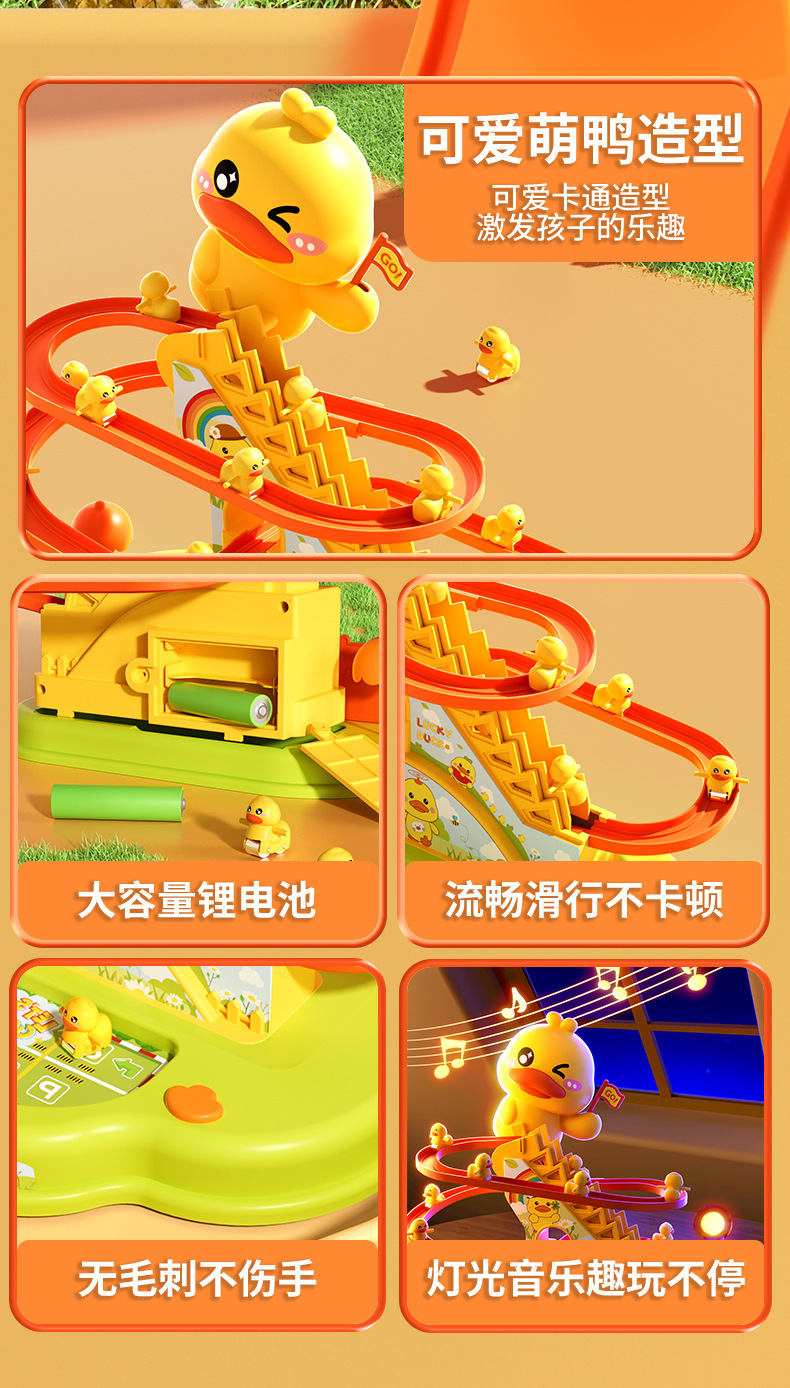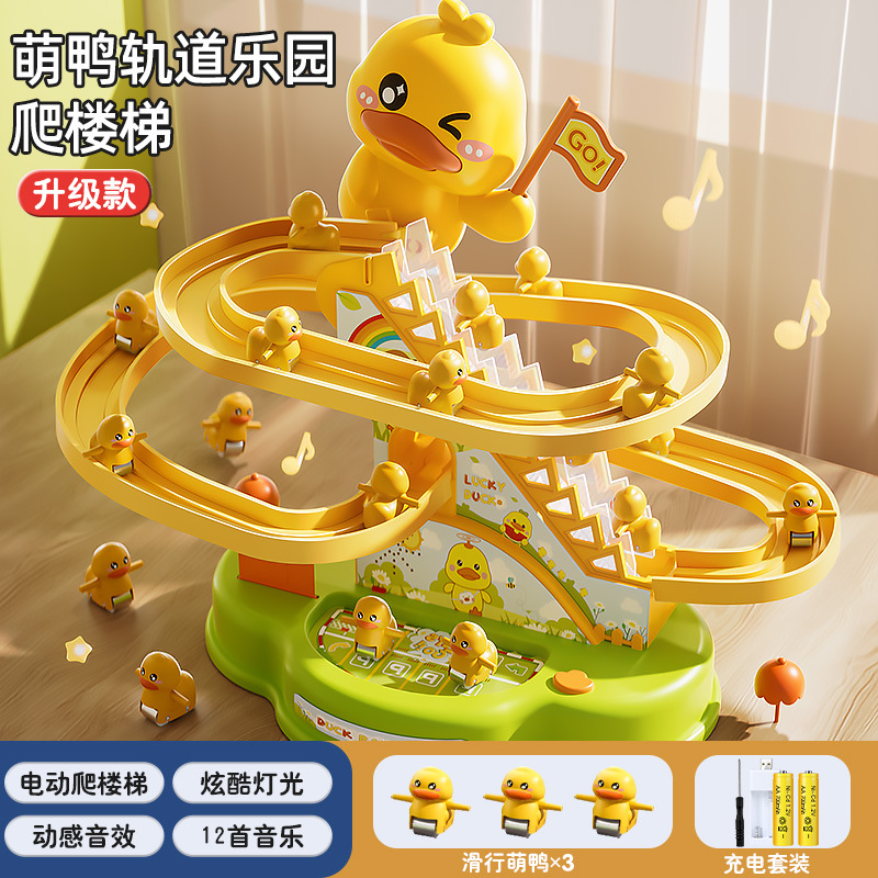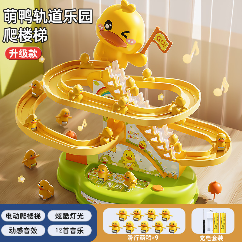 어린이 작은 노란 오리 등반 계단 어린이 교육 전기 트랙 1 세 3 여성과 소년 장난감 슬라이드 2