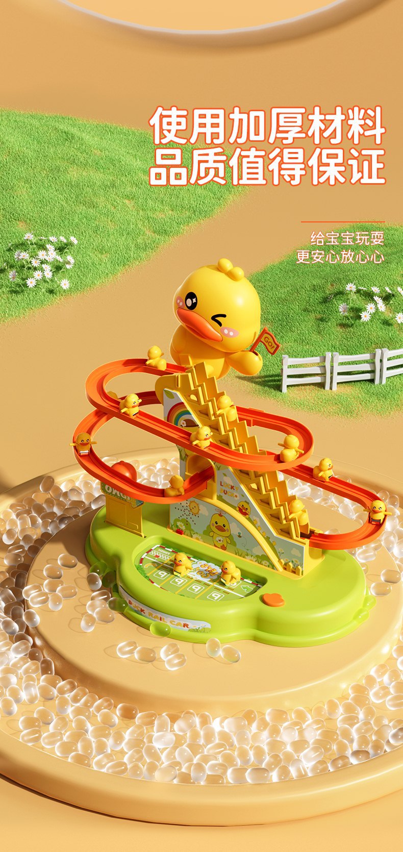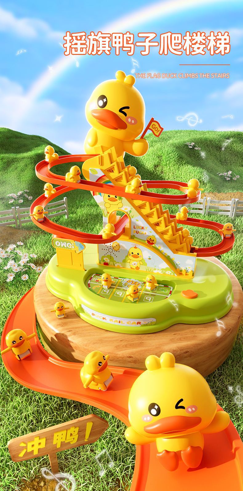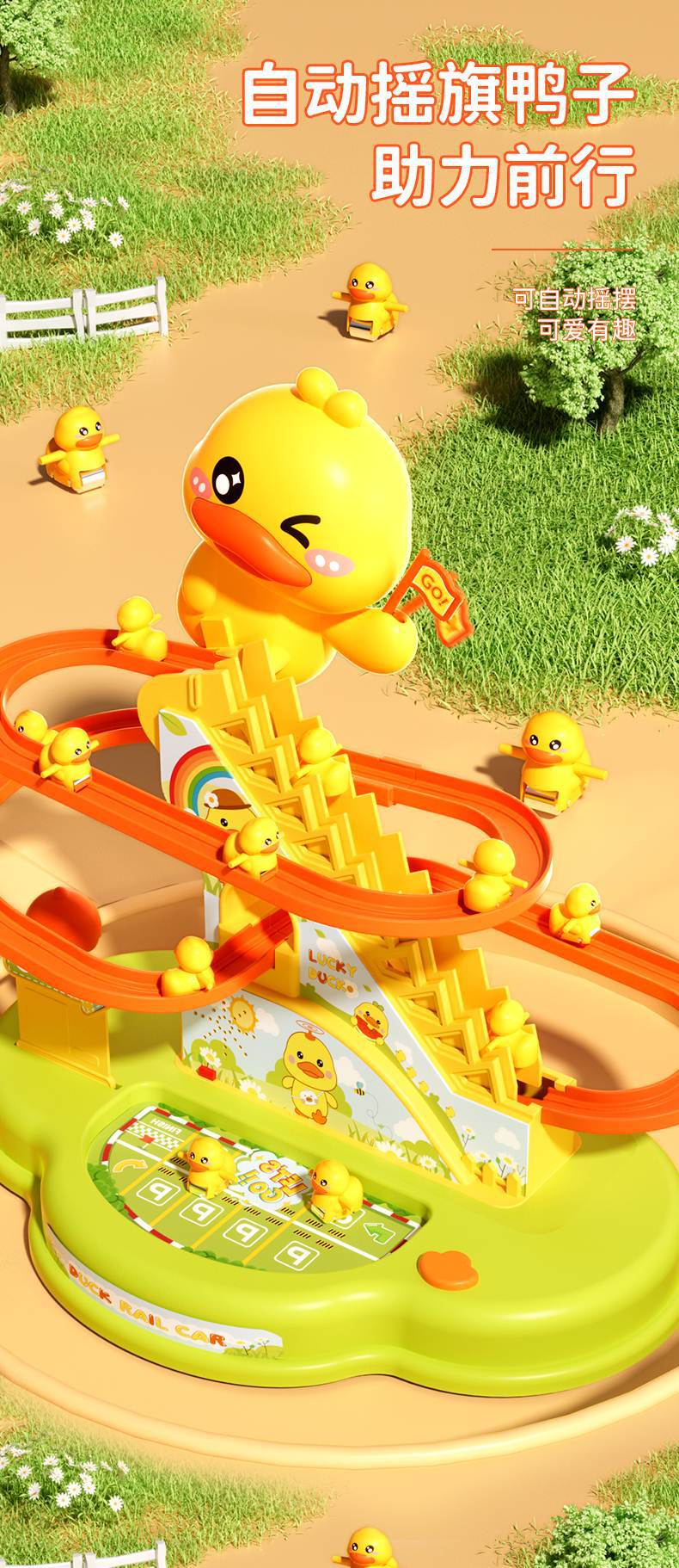 어린이 작은 노란 오리 등반 계단 어린이 교육 전기 트랙 1 세 3 여성과 소년 장난감 슬라이드 2
