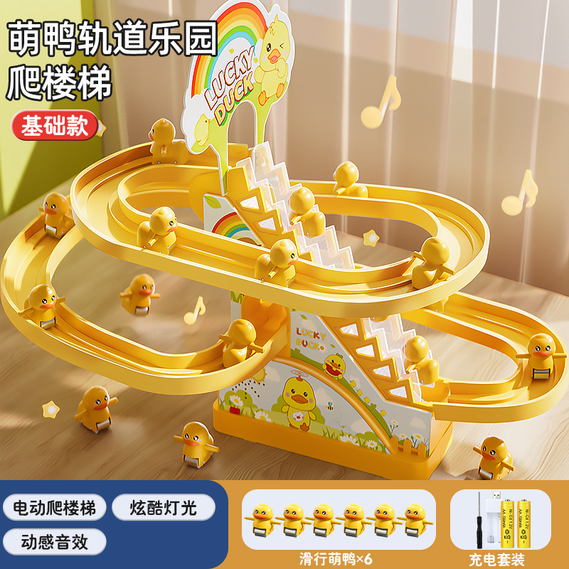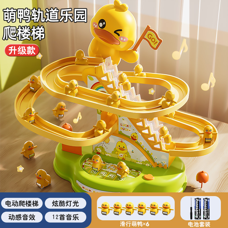 어린이 작은 노란 오리 등반 계단 어린이 교육 전기 트랙 1 세 3 여성과 소년 장난감 슬라이드 2스토어 가기