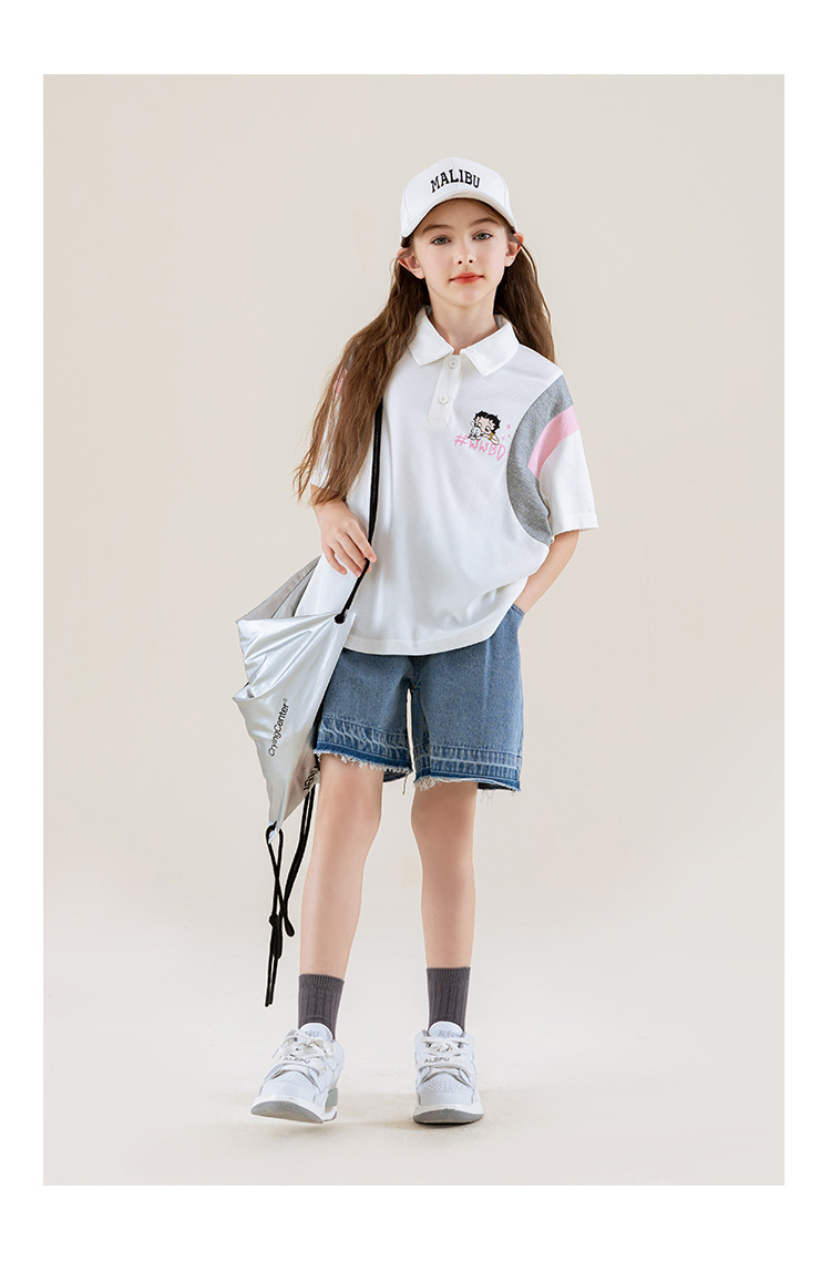BETTY BOOP 아동복 소녀 데님 반바지 2025 여름 소녀 어린이 여름 서양식 캐주얼 루즈스토어 가기