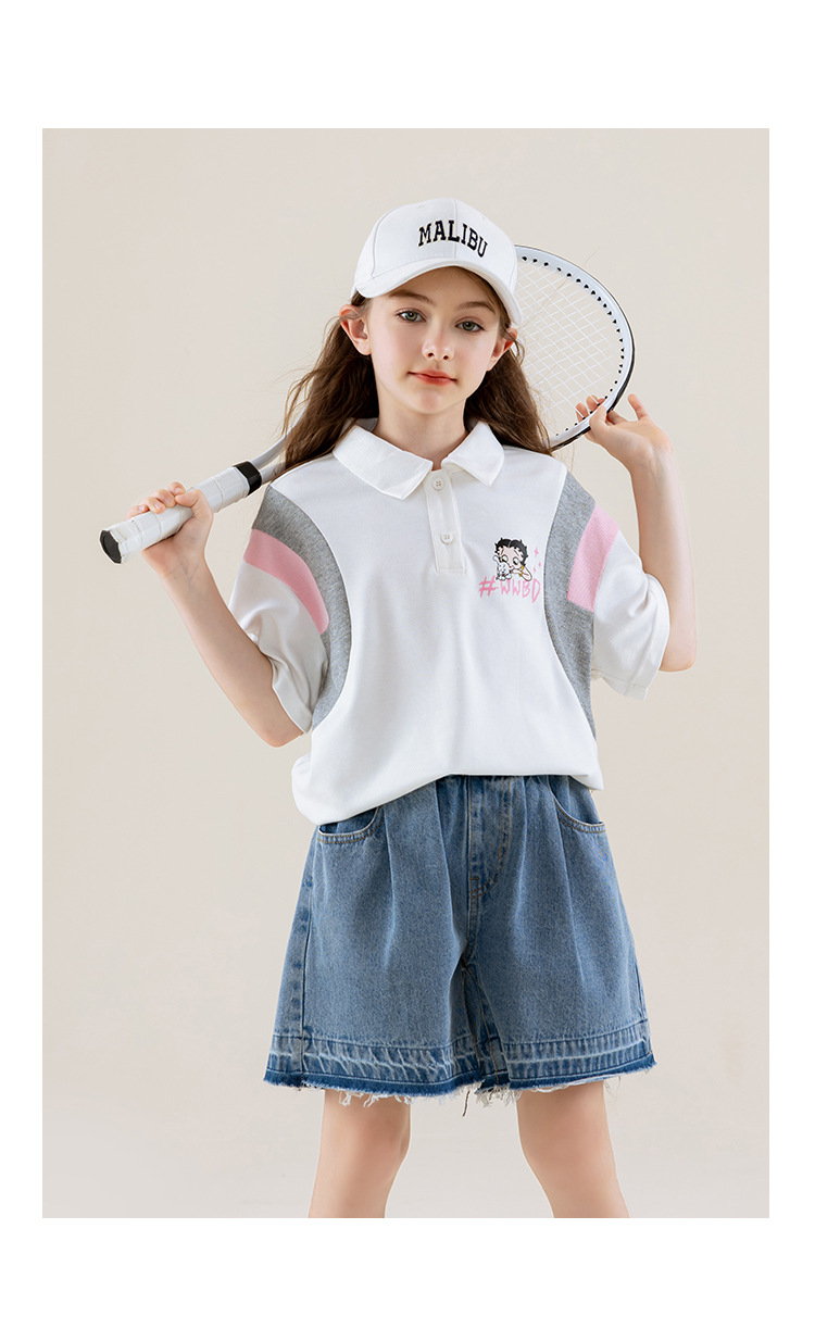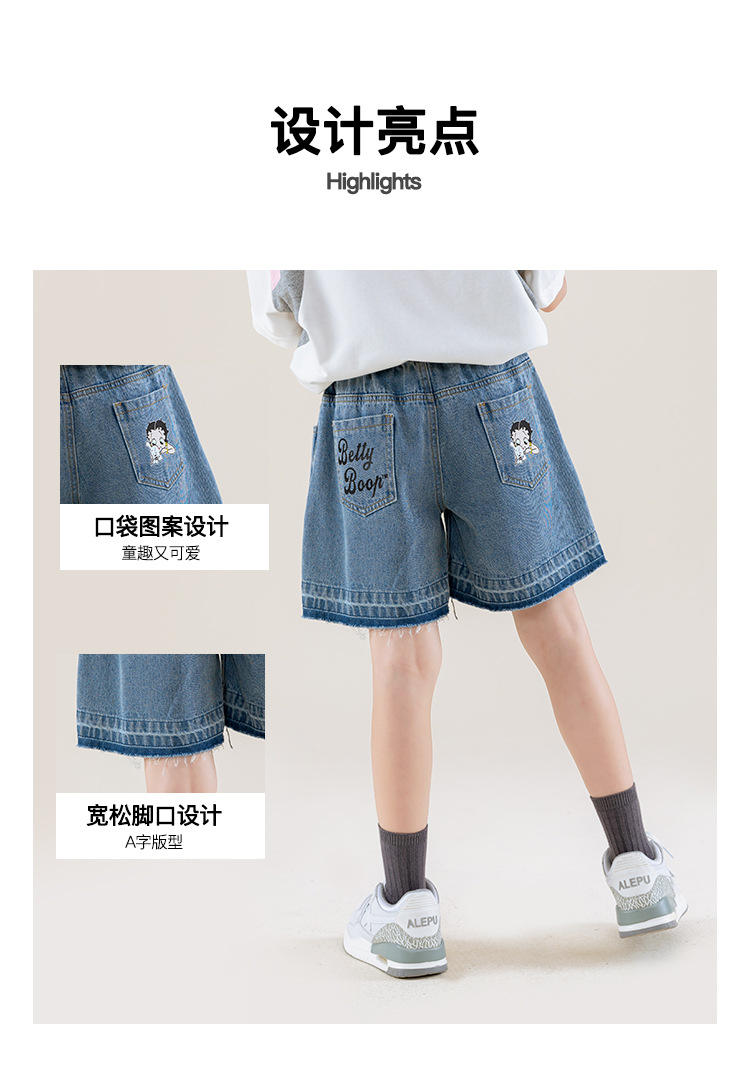 BETTY BOOP 아동복 소녀 데님 반바지 2025 여름 소녀 어린이 여름 서양식 캐주얼 루즈