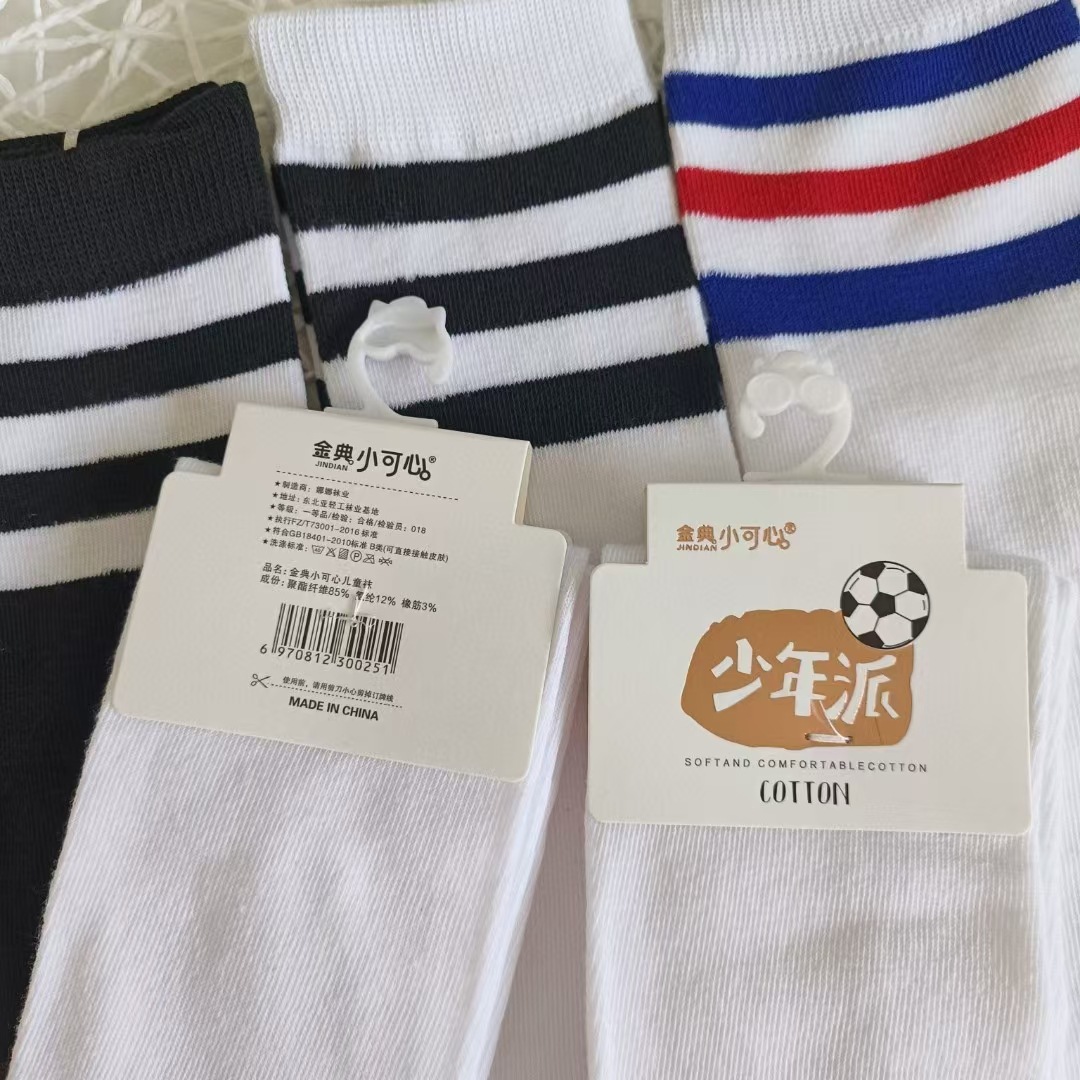 어린이 축구 양말 봄, 여름, 가을 긴 튜브 3 스트라이프 폴리 에스터 러닝 양말 얇은 스포츠 양말 도매스토어 가기