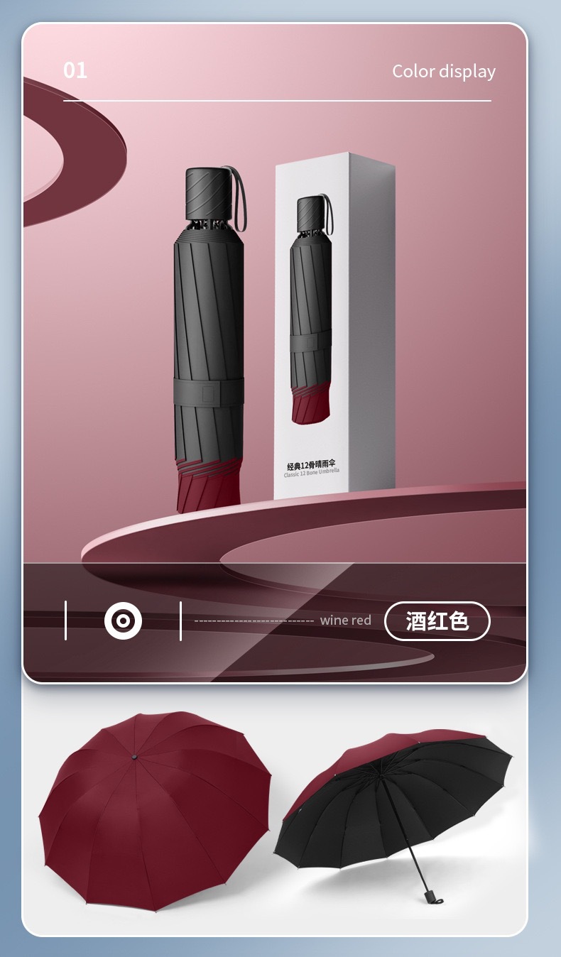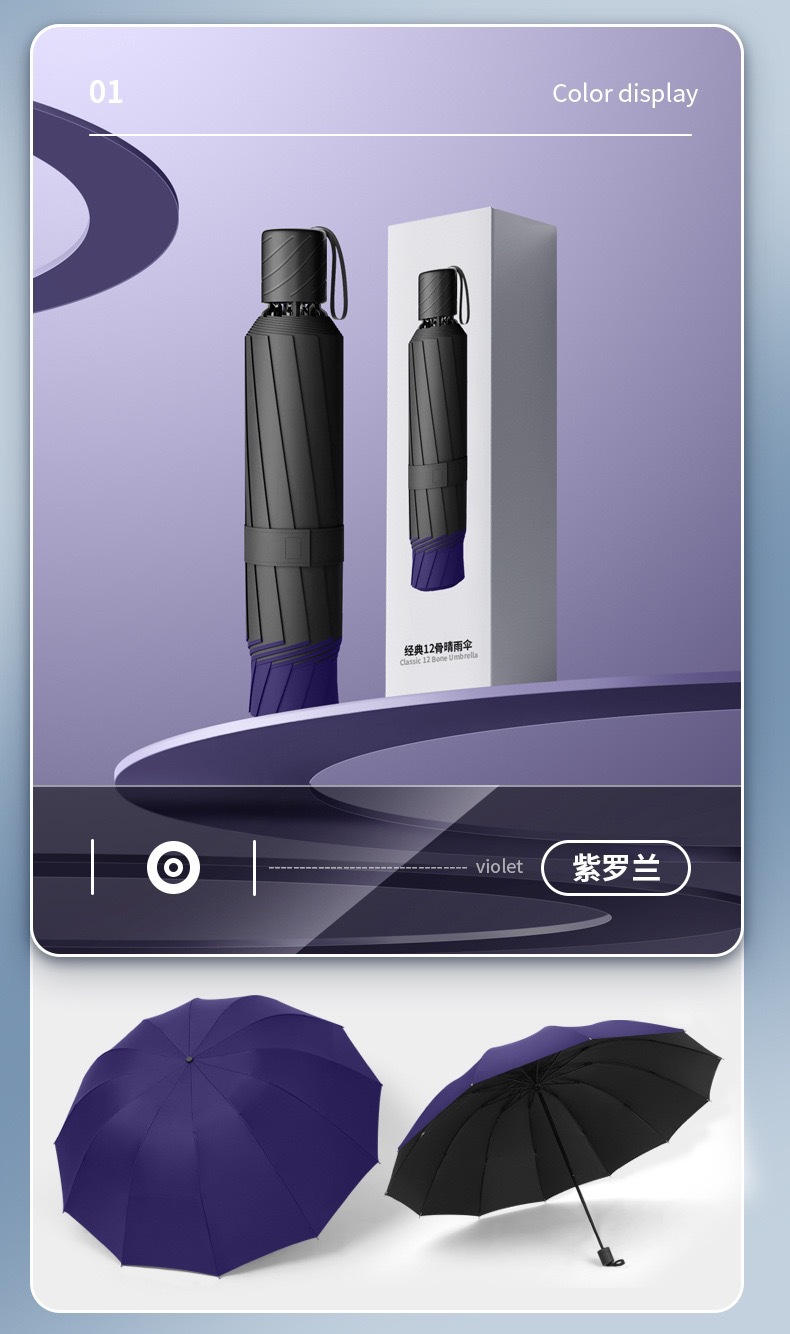 12 뼈 대형 우산 비와 빛나는 이중 목적 우산 증가 강화 비 및 빛나는 이중 목적 우산 도매 접이식 우산 공장 아울렛스토어 가기