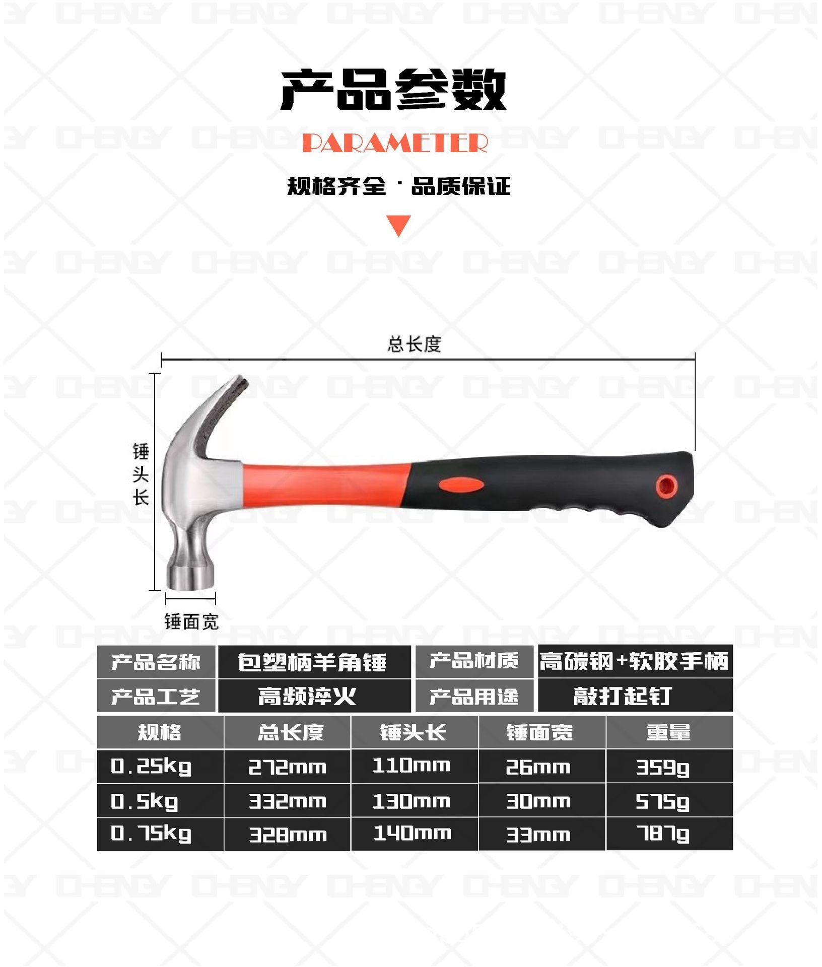 • 0.25KG 플라스틱 코팅 손잡이 클로 해머, 상자당 20개, 개당 80개
