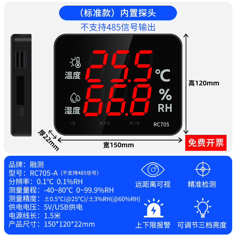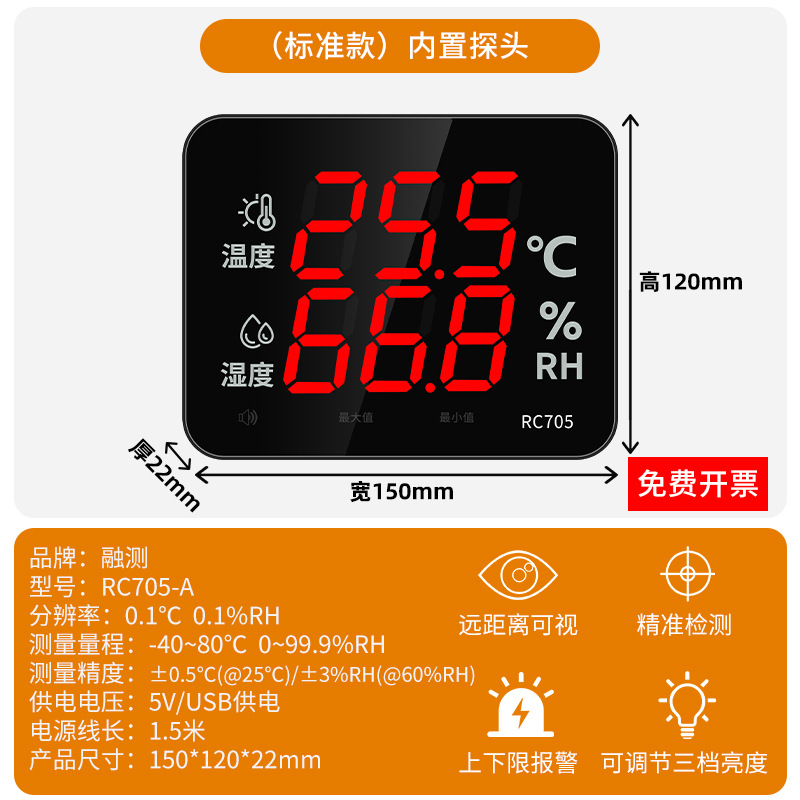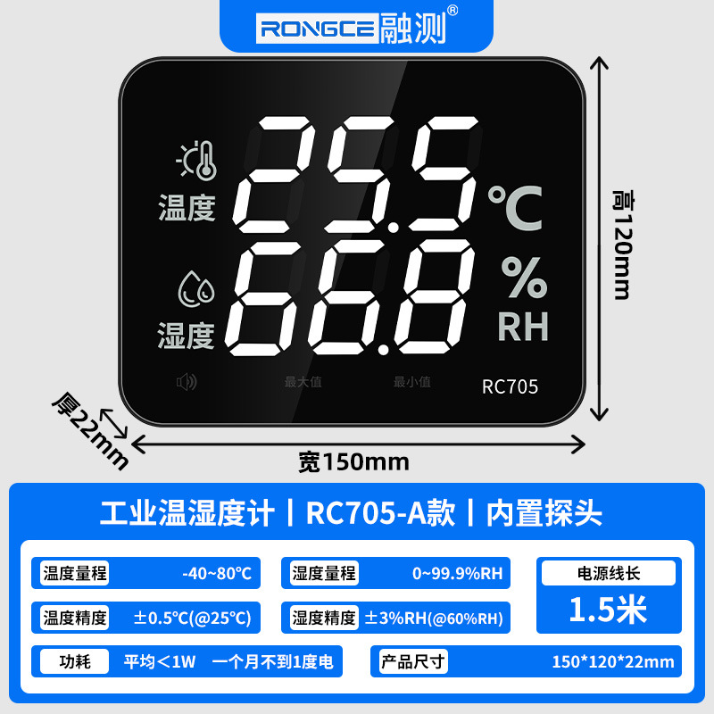 Rongte 전자 온도 및 습도 측정기 산업용 벽걸이 형 알람 고정밀 온도계 측정기 제조업체 RC705스토어 가기