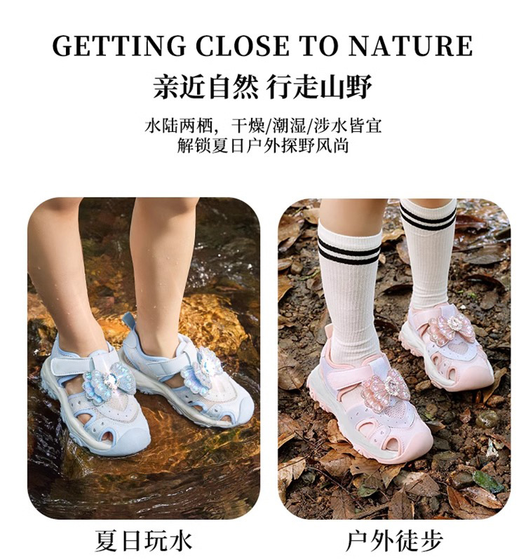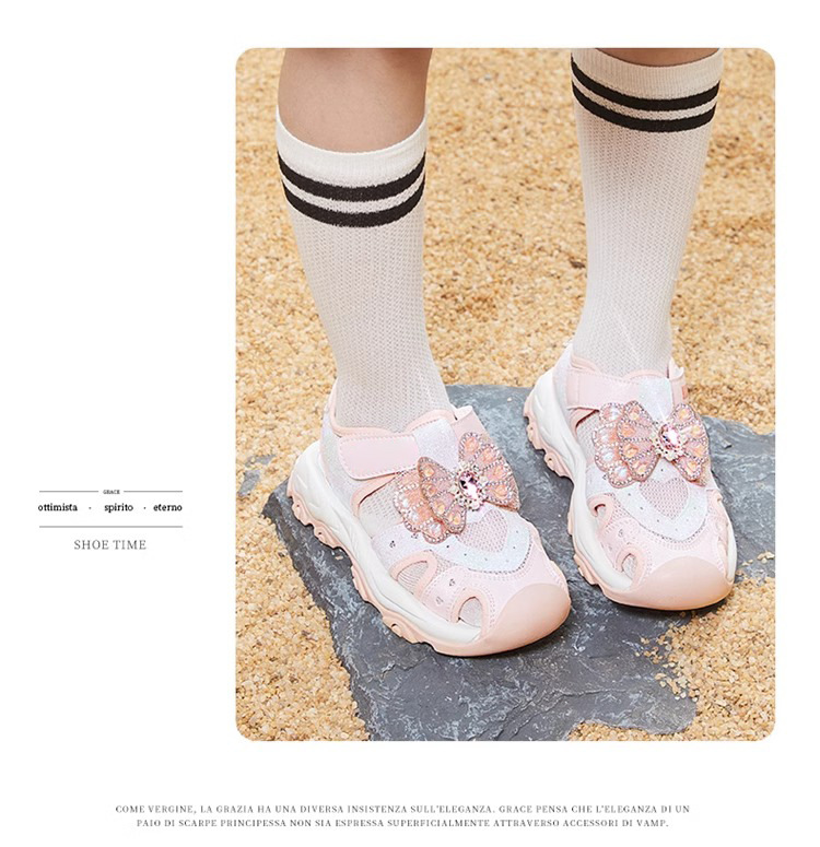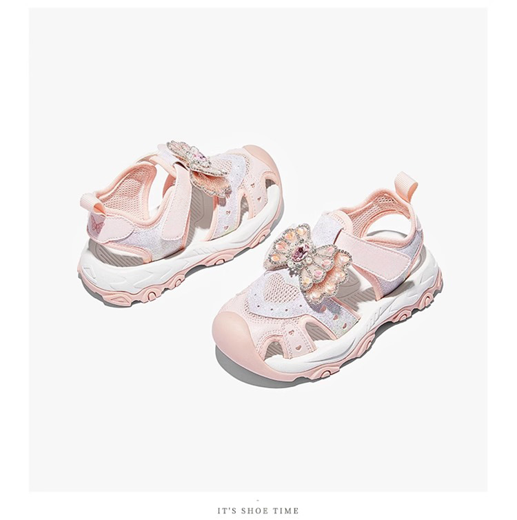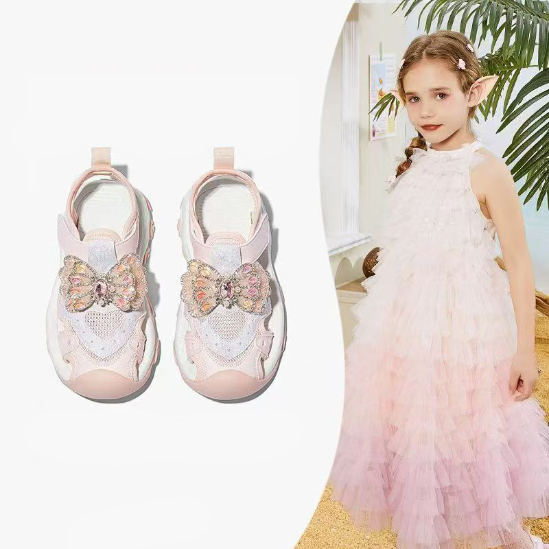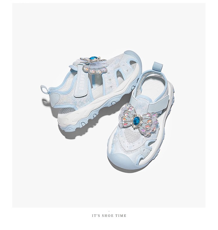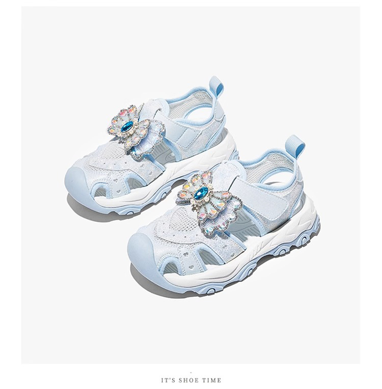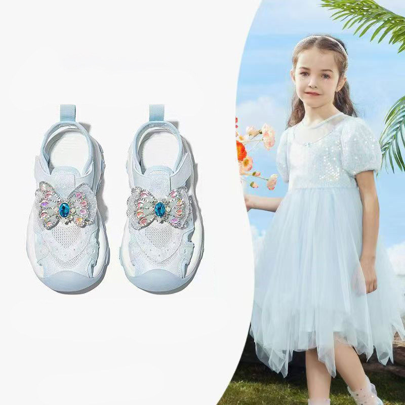 2025 새로운 여자 여름 반짝 이는 신발 Baotou 스포츠 샌들 부드러운 바닥 엘사 공주 신발 여자 어린이 신발스토어 가기