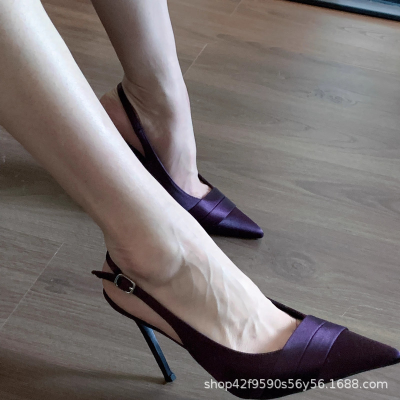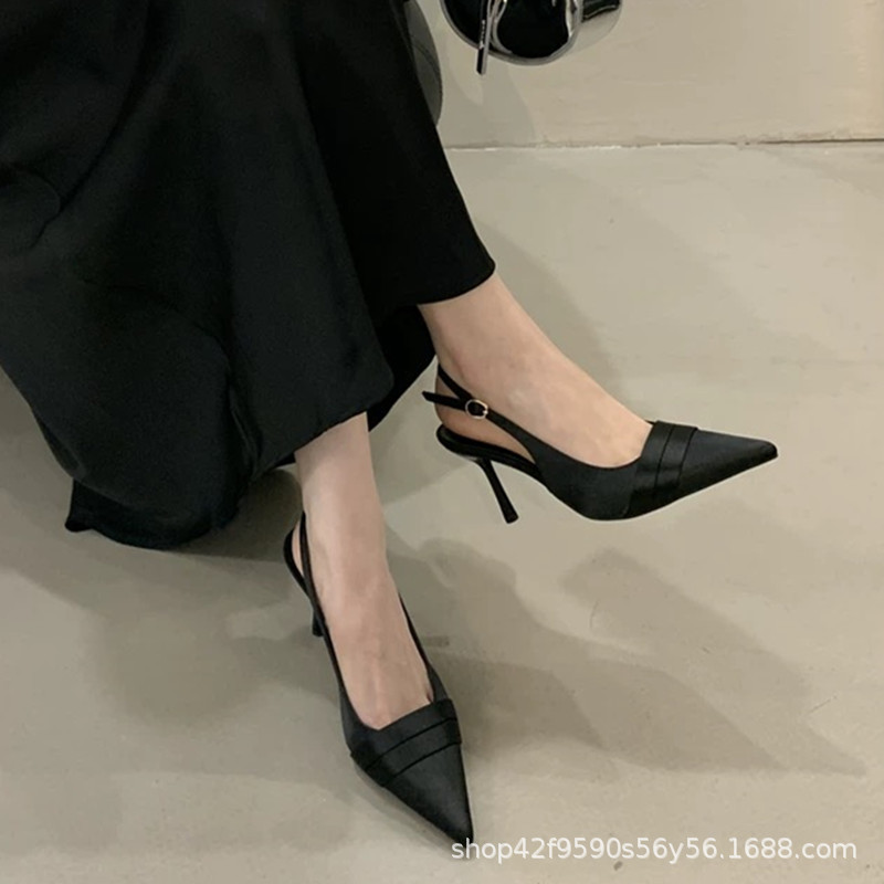 여자 2025 년 새 뾰족한 프랑스 우아한 새틴 올 매치 빈 샌들 버클 발가락스토어 가기