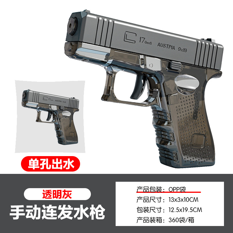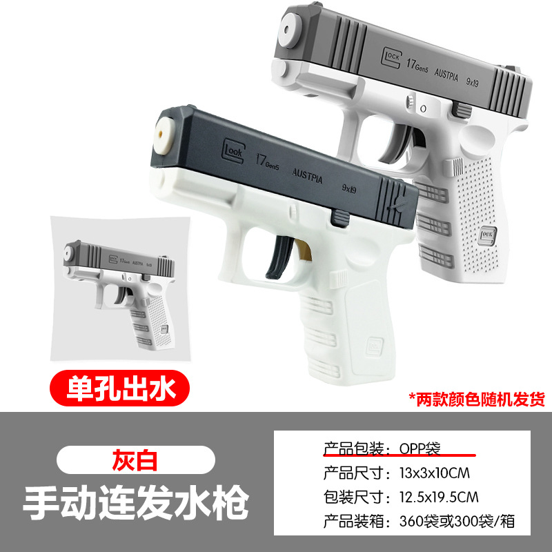 | 格洛克水枪 | 60ML | 灰白、蓝白、粉白 | OPP袋 | 13x3x10 | 12.5x19.5 | 360 300 | 74.5*38.5*56 76*31.5*47 |
