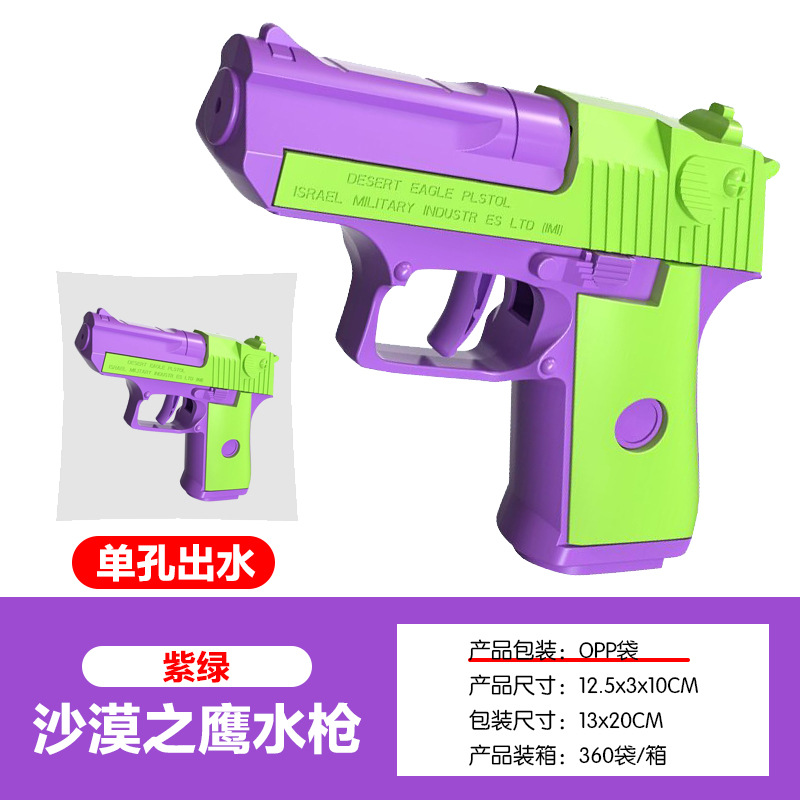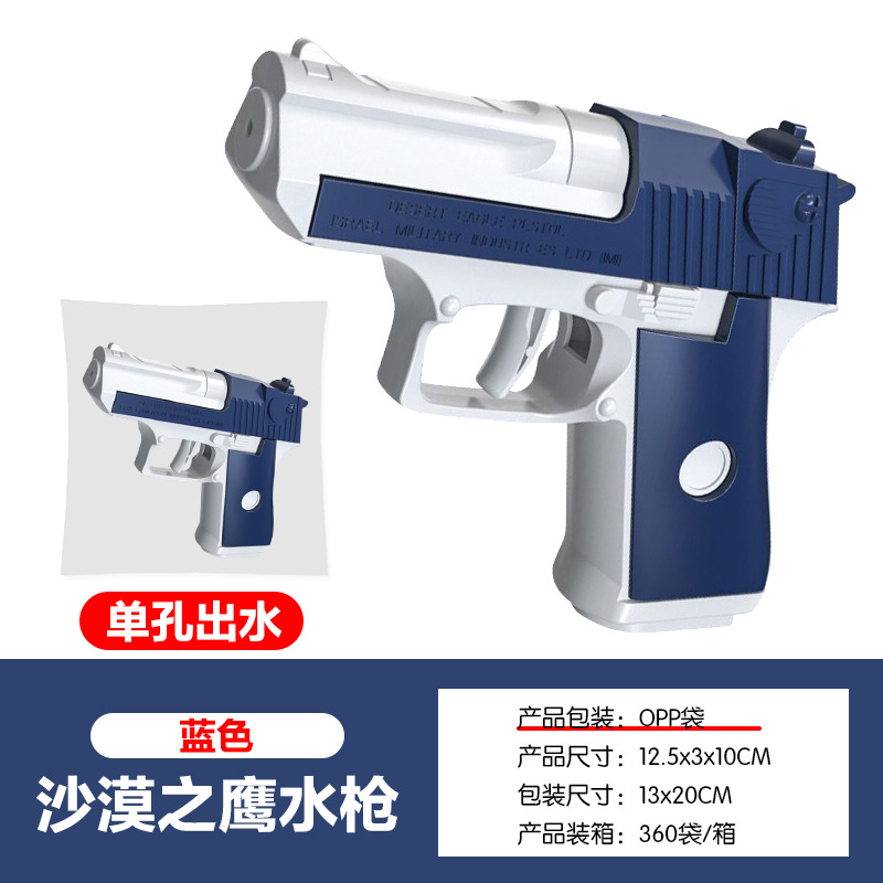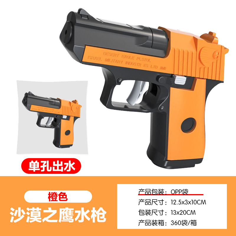 | 沙漠之鹰水枪 | 50ML | 黑色、蓝色、粉色 紫绿、橙色、绿色 透明金、透明蓝、透明粉 *透明款箱批起订 | OPP袋 | 12.5x3x10 | 20x13 | 360 | 74.5*38.5*56 |