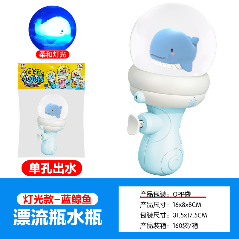 | 漂流瓶水枪(灯光) | 300ML | 粉章鱼、蓝鲸鱼 黄小鸭、游艇船 | OPP袋 | 16x8x8 | 31.5x17.5 | 160 | 72*35*83 |