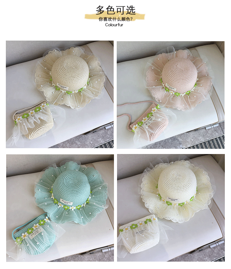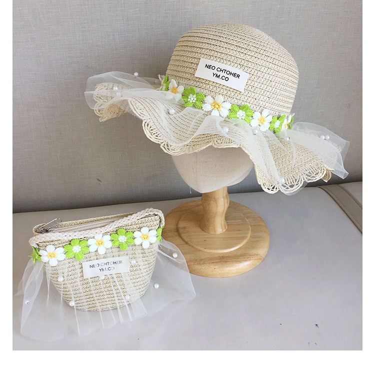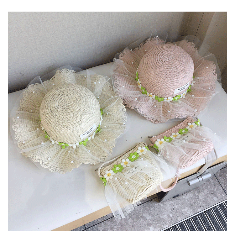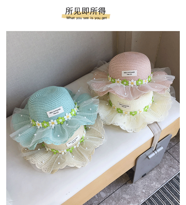여름 공주 메쉬 시리즈 진주 물결 어린이 밀짚 모자 소녀의 햇빛 모자 비치 활 밀짚 모자스토어 가기