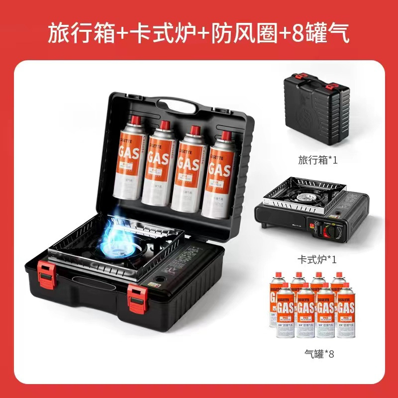 • 단일 난로 + 항온 가방 + 방풍 링 + 여행 가방 + 가스 8개 --- 특별 상품