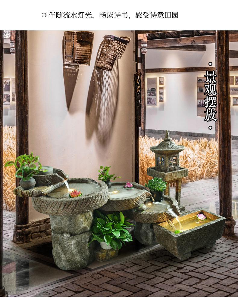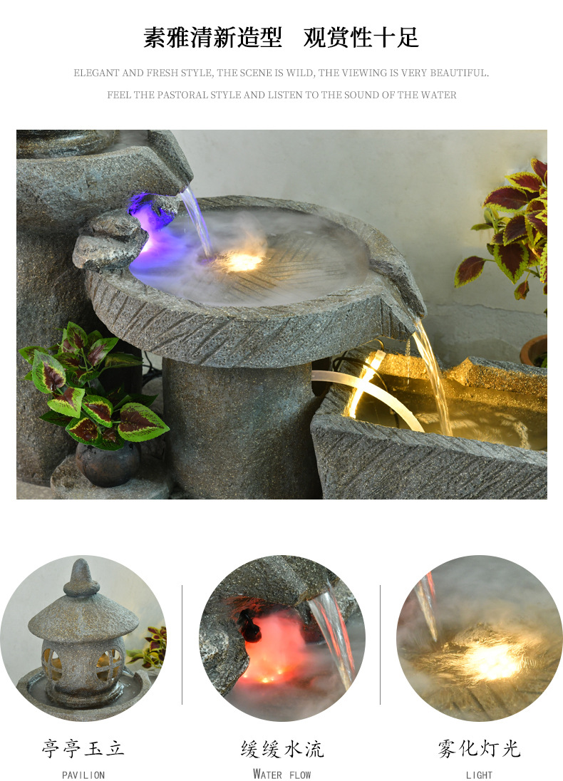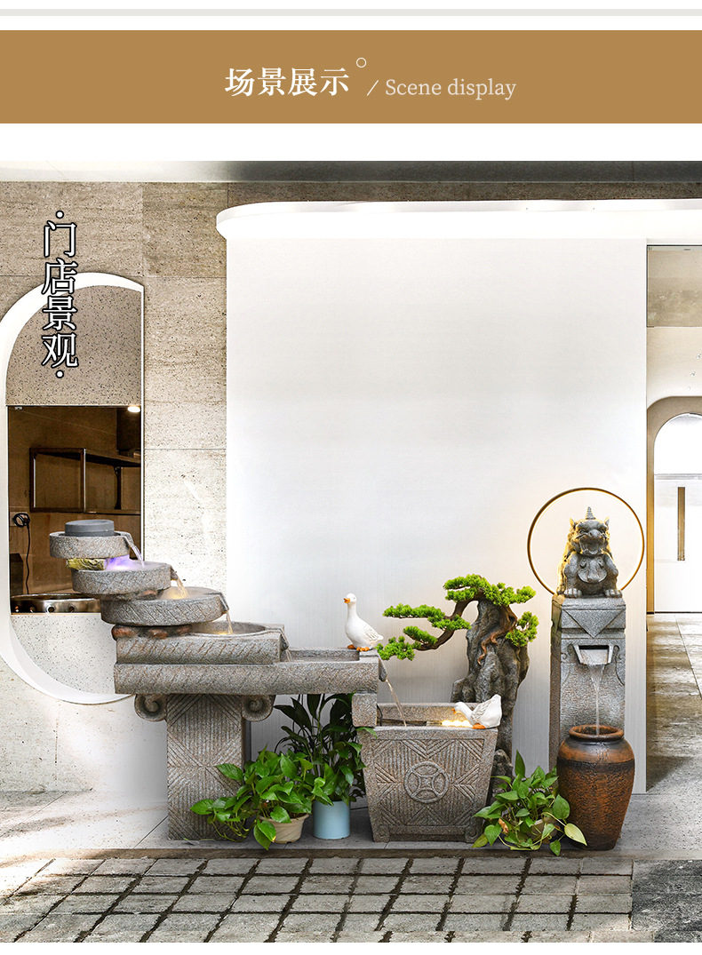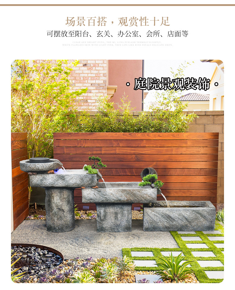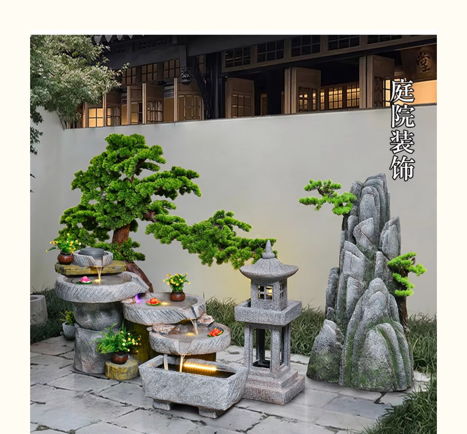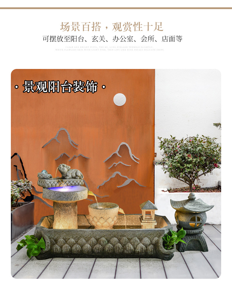 대형 석가분수, 순수장식품, 순환수경, 발코니, 빌라, 안뜰, 연못, 실외 및 실내 조경 D&