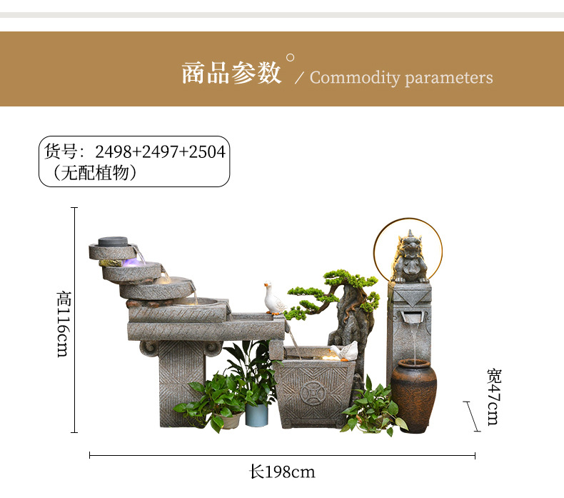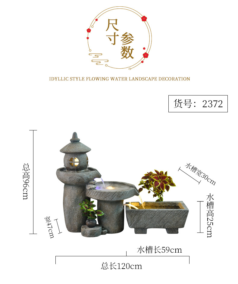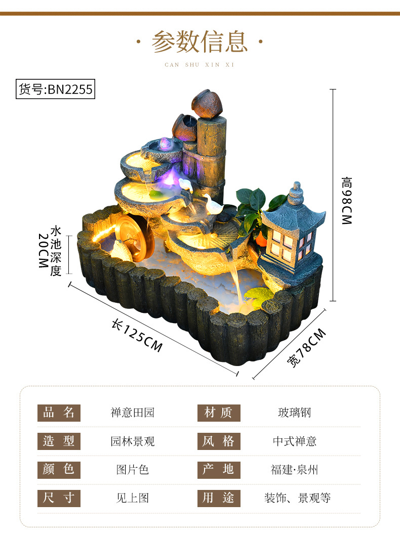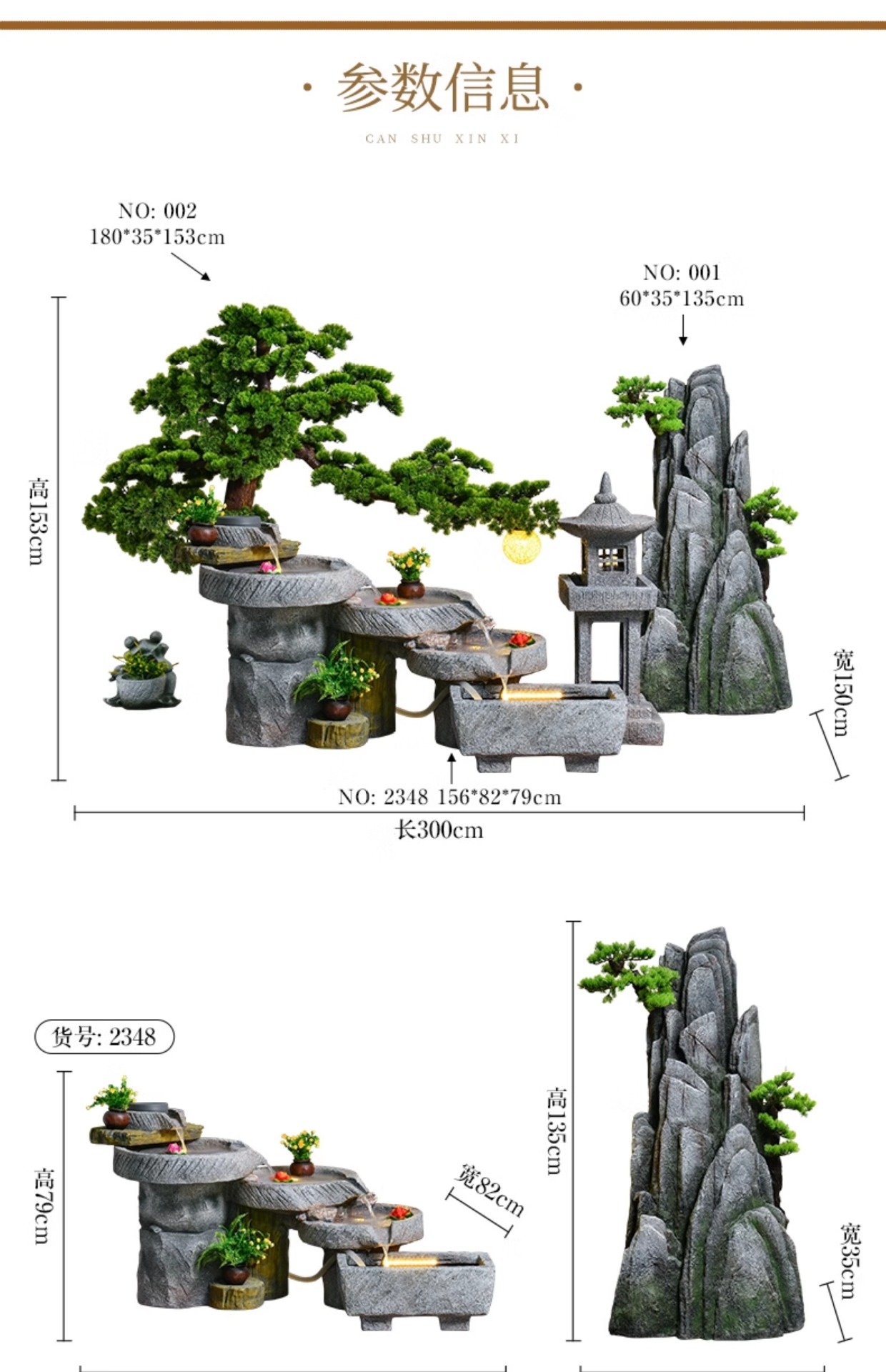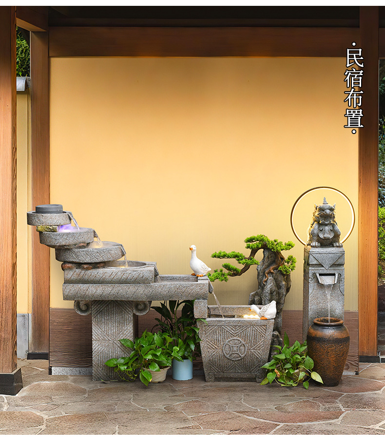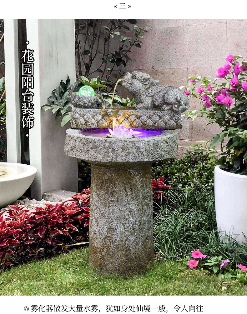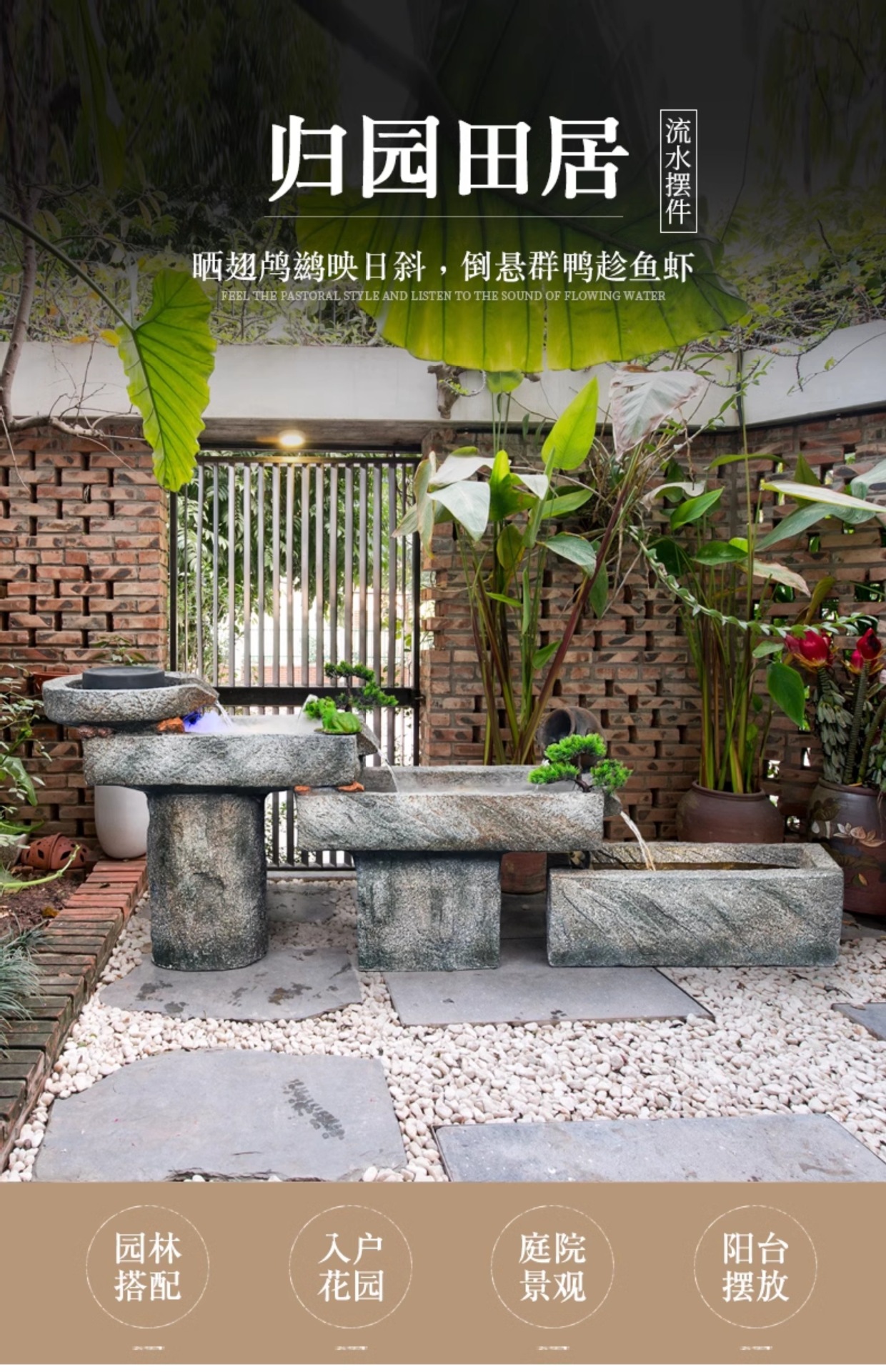 대형 석가분수, 순수장식품, 순환수경, 발코니, 빌라, 안뜰, 연못, 실외 및 실내 조경 D&