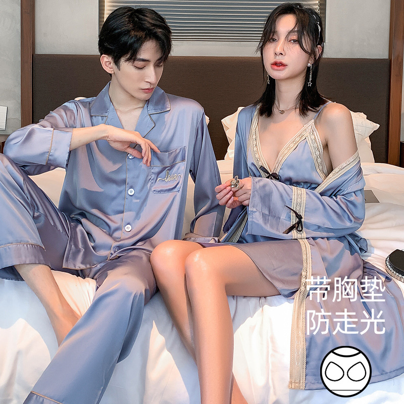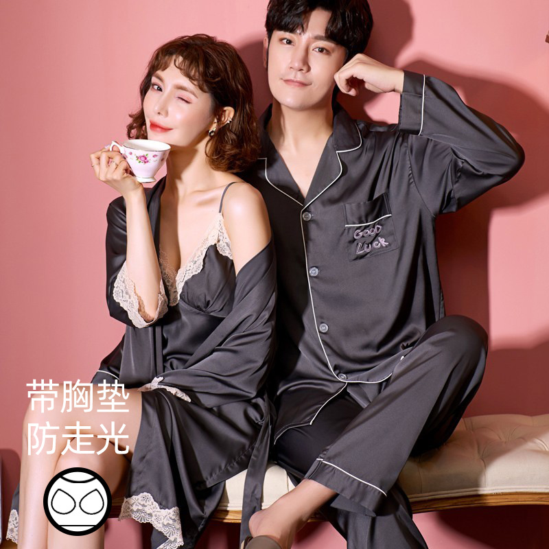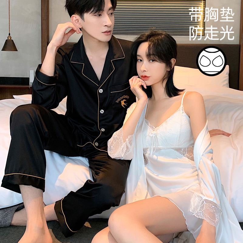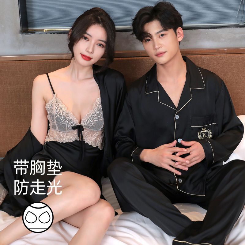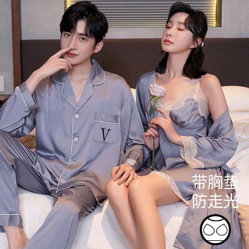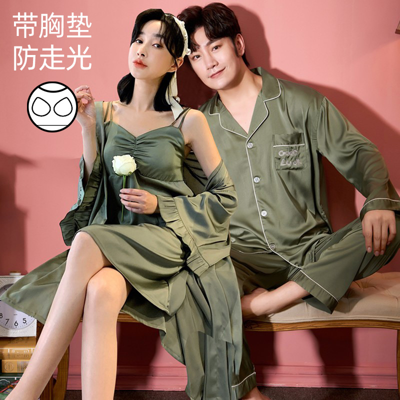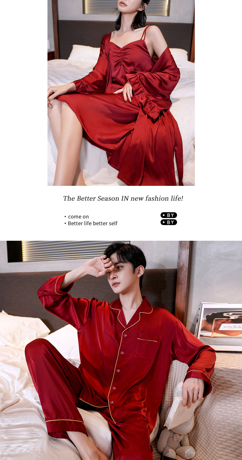 커플 잠옷 여성 결혼식 여름 얼음 실크 섹시한 잠옷 투피스 세트 빨간색 신혼 실크 남성 반팔 가정복스토어 가기