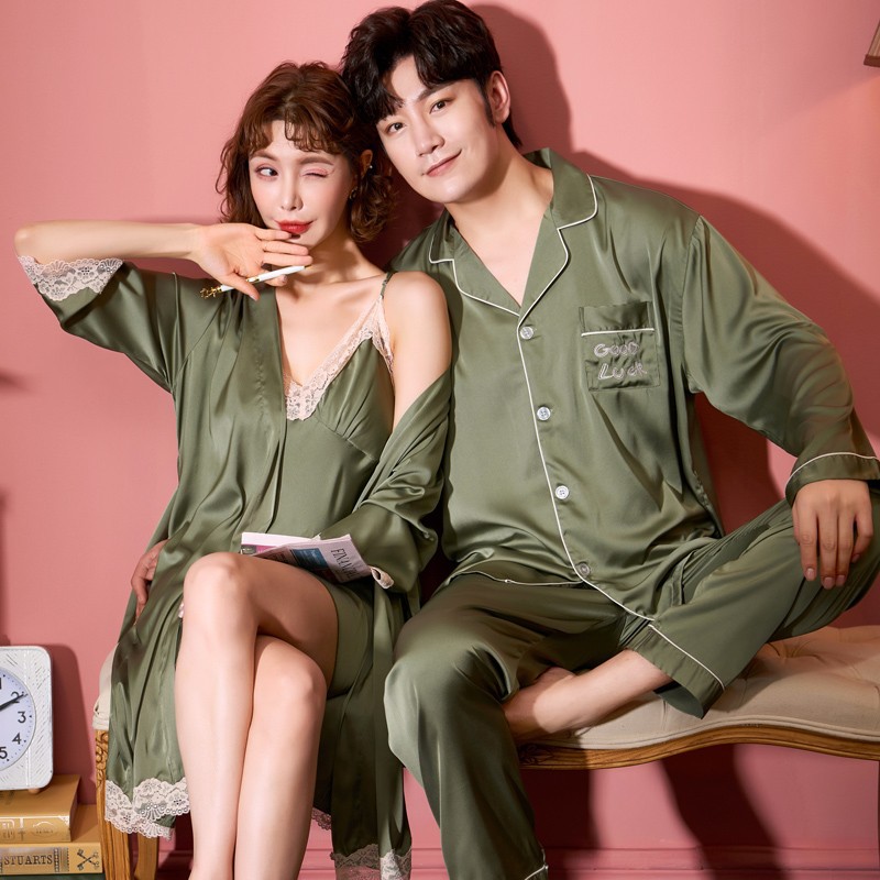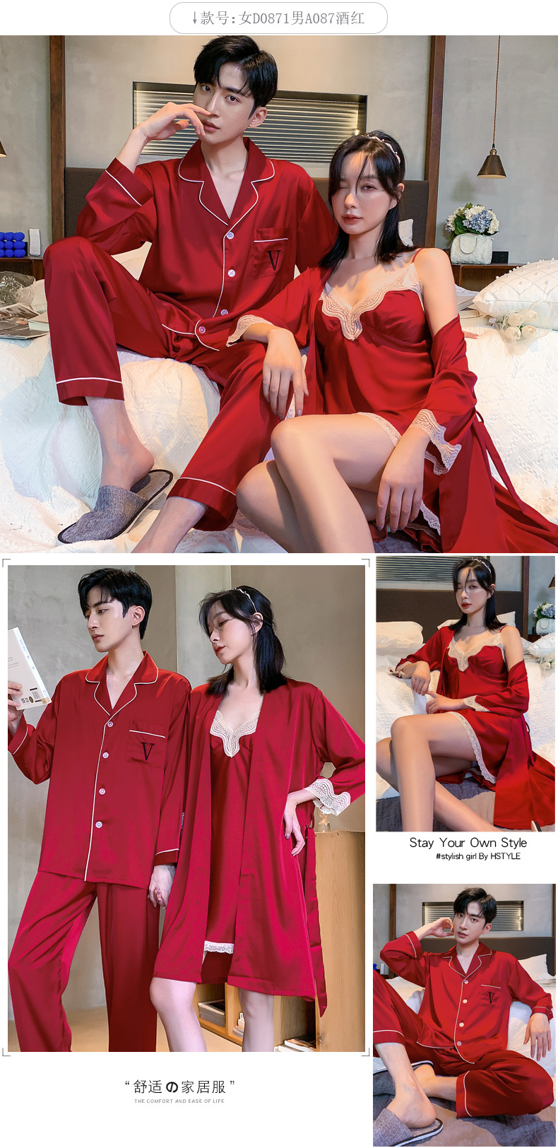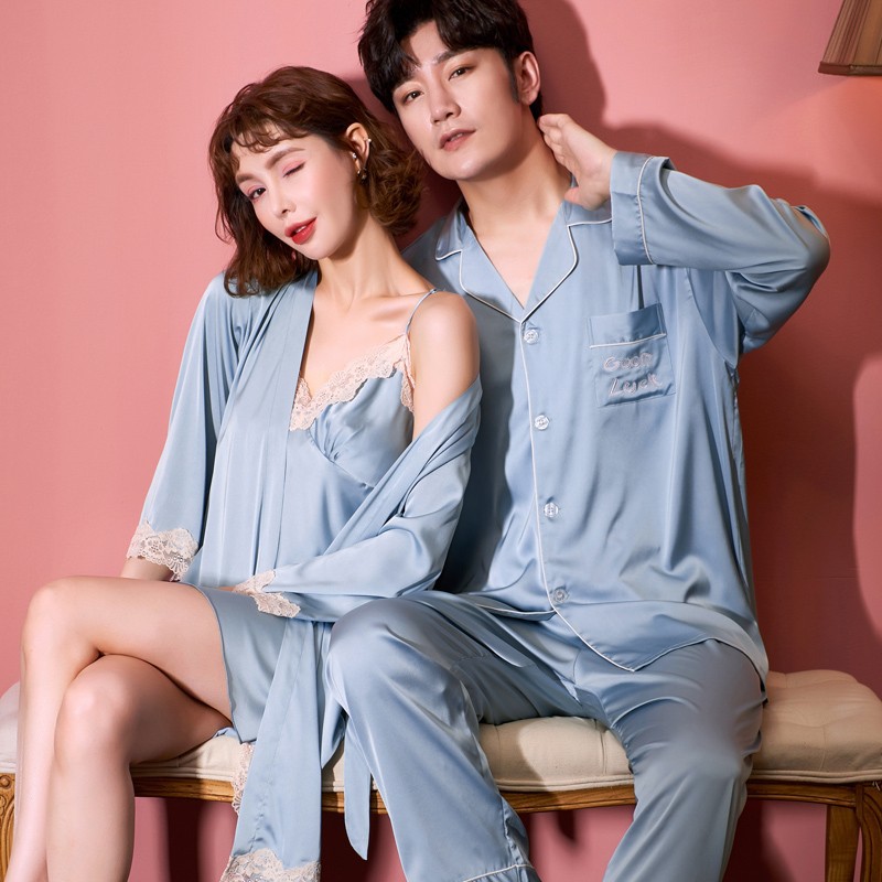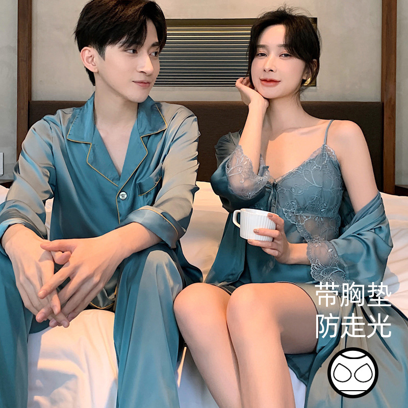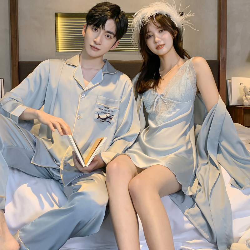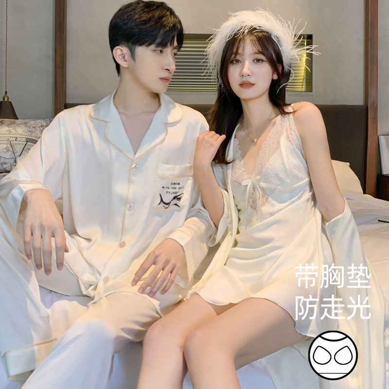 커플 잠옷 여성 결혼식 여름 얼음 실크 섹시한 잠옷 투피스 세트 빨간색 신혼 실크 남성 반팔 가정복스토어 가기