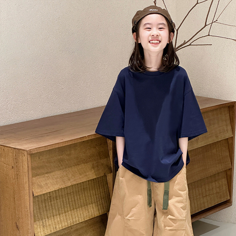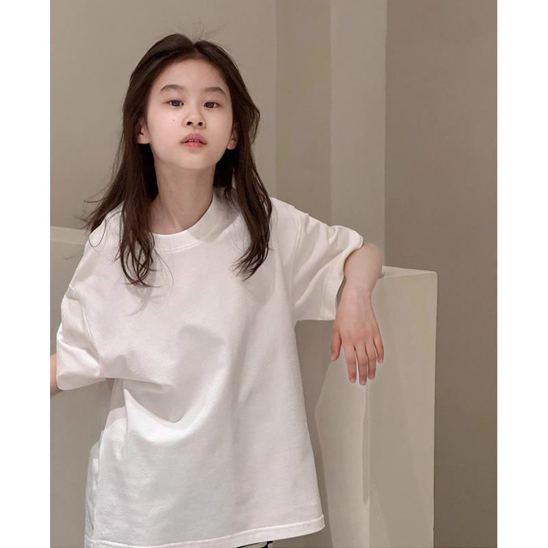 여자 퓨어 코튼 반팔 티셔츠 솔리드 컬러베이스 셔츠 대형 어린이 여름복 한국 라운드 넥 반소매 올매치 트렌디 탑스토어 가기