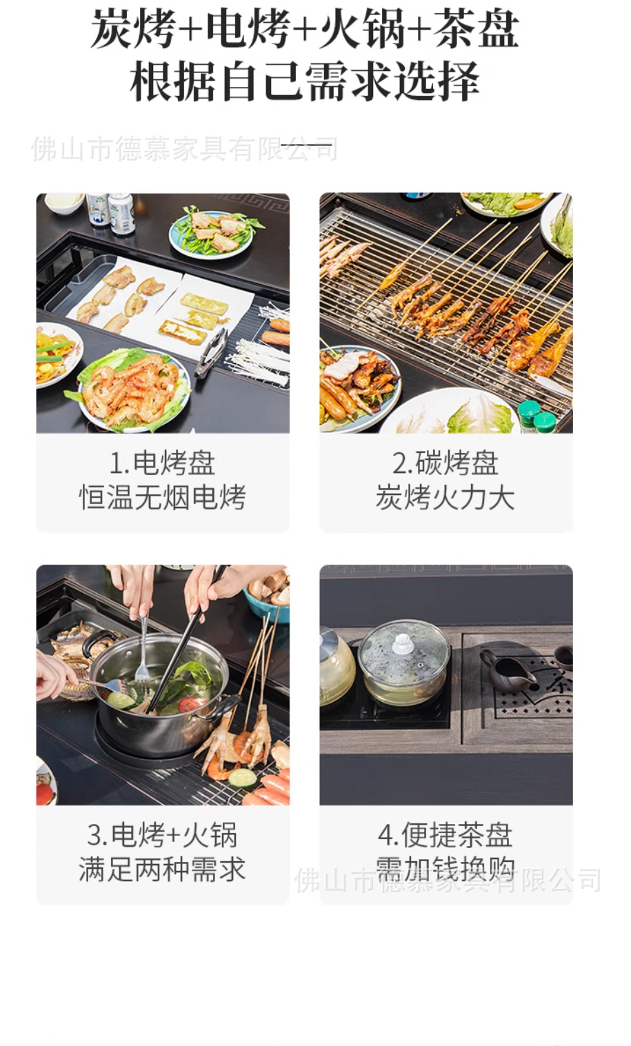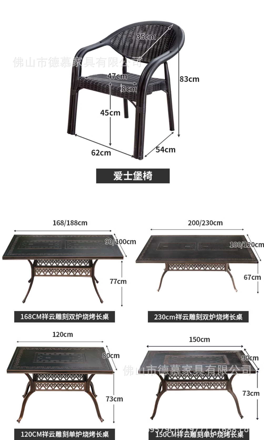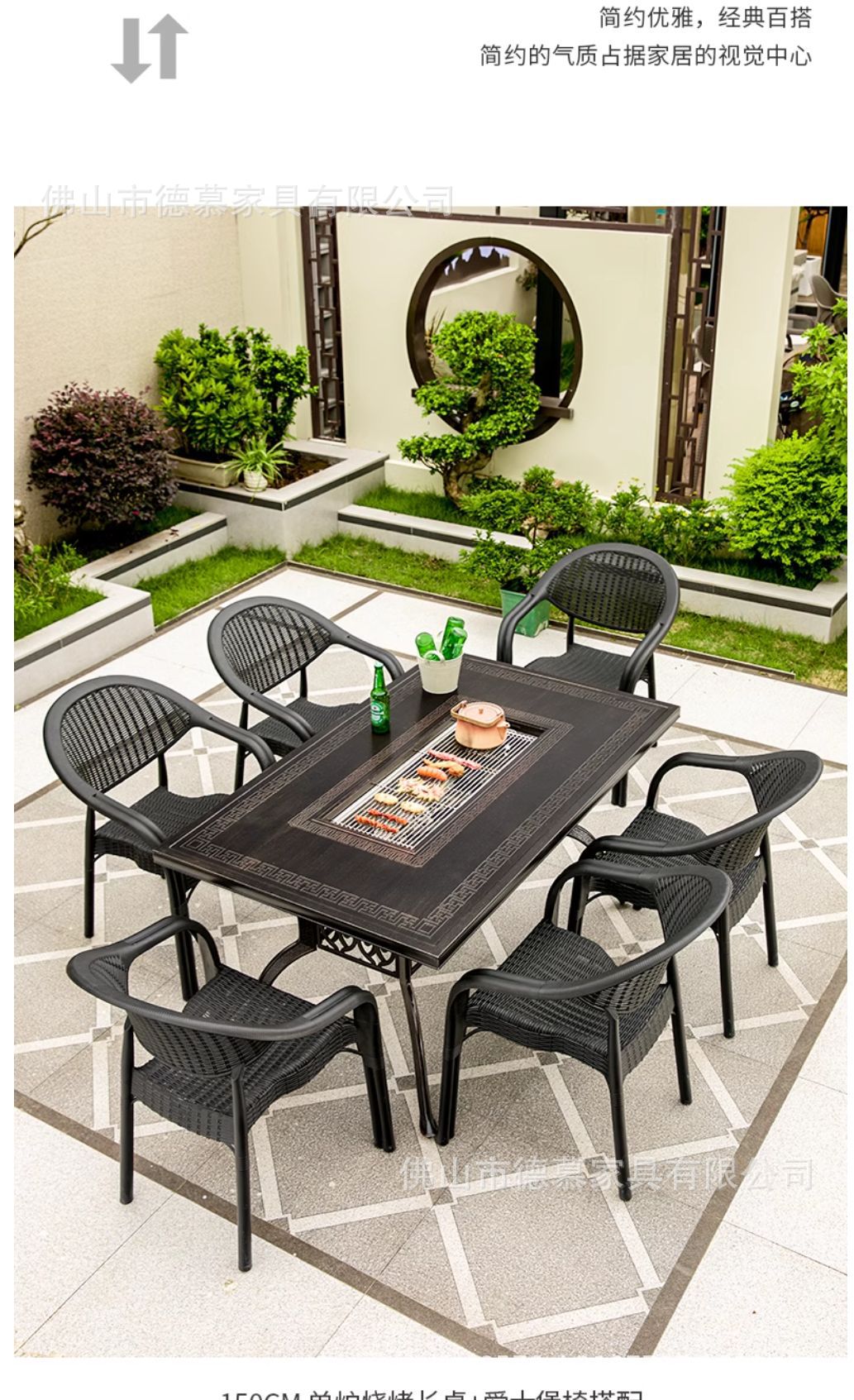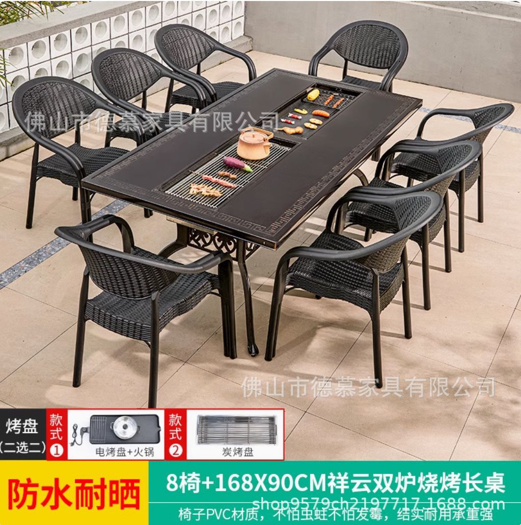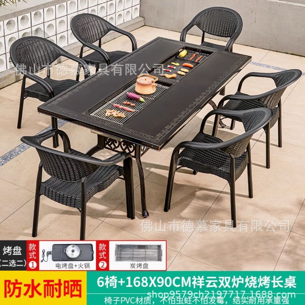 • 6+1【168CM Xiangyun 이중 난로 바비큐 롱 테이블】이중 난로