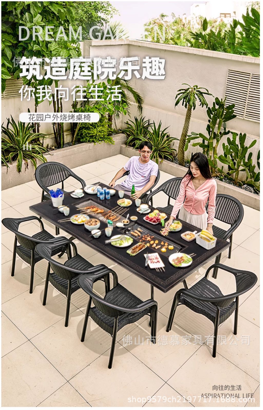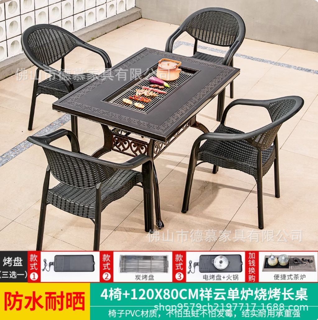 야외 안뜰 정원 바베큐 테이블 테라스 알루미늄 합금 가정용 캐주얼 다이닝 테이블 전기 그릴 숯 그릴 이중 목적 야외 테이블 및 의자스토어 가기