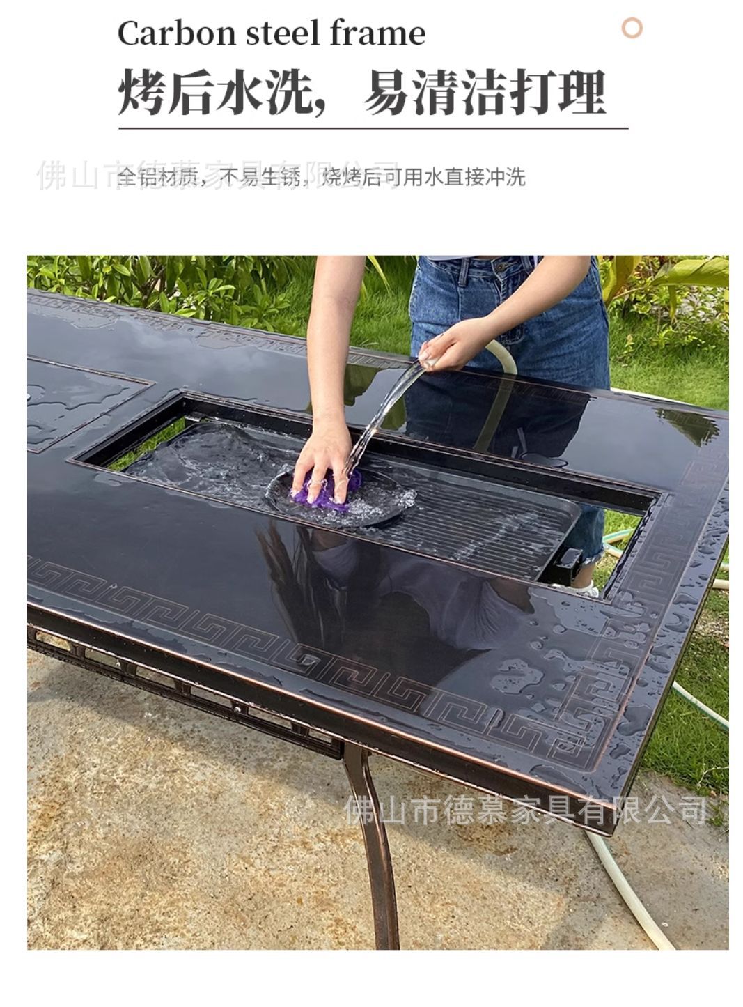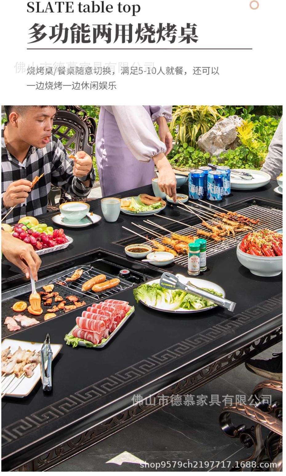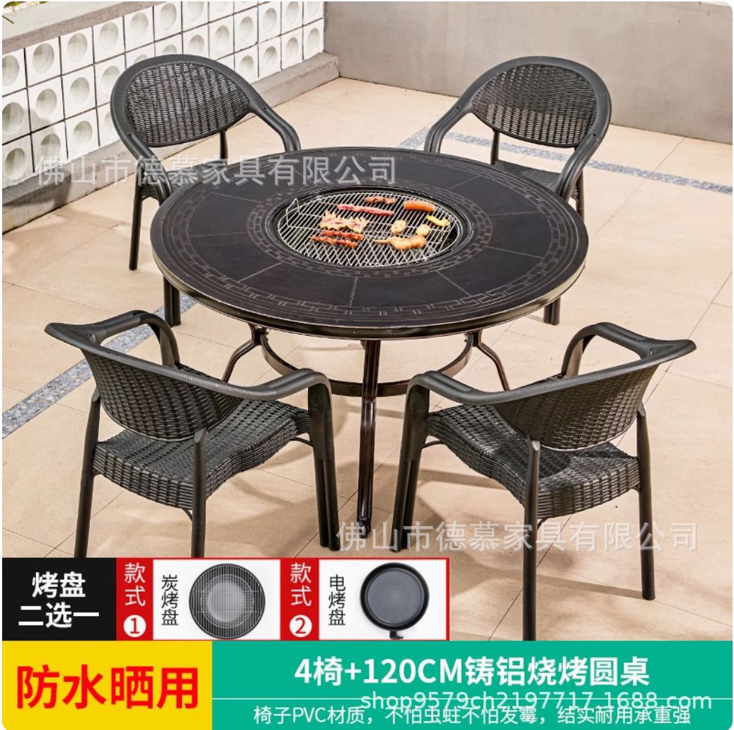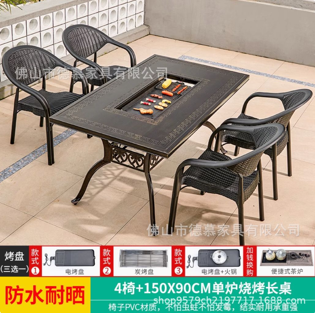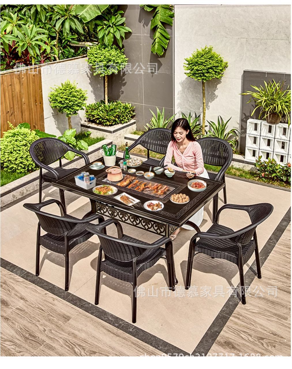 야외 안뜰 정원 바베큐 테이블 테라스 알루미늄 합금 가정용 캐주얼 다이닝 테이블 전기 그릴 숯 그릴 이중 목적 야외 테이블 및 의자