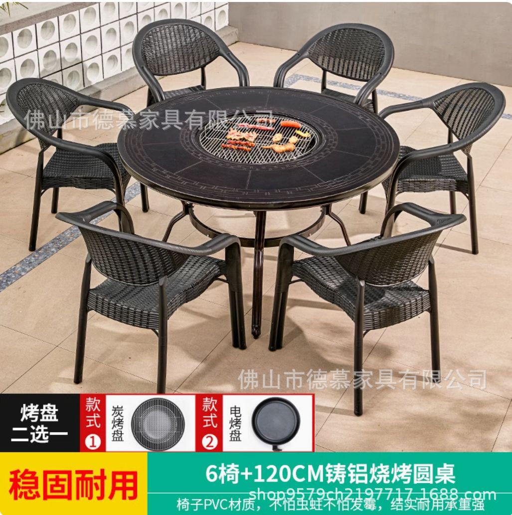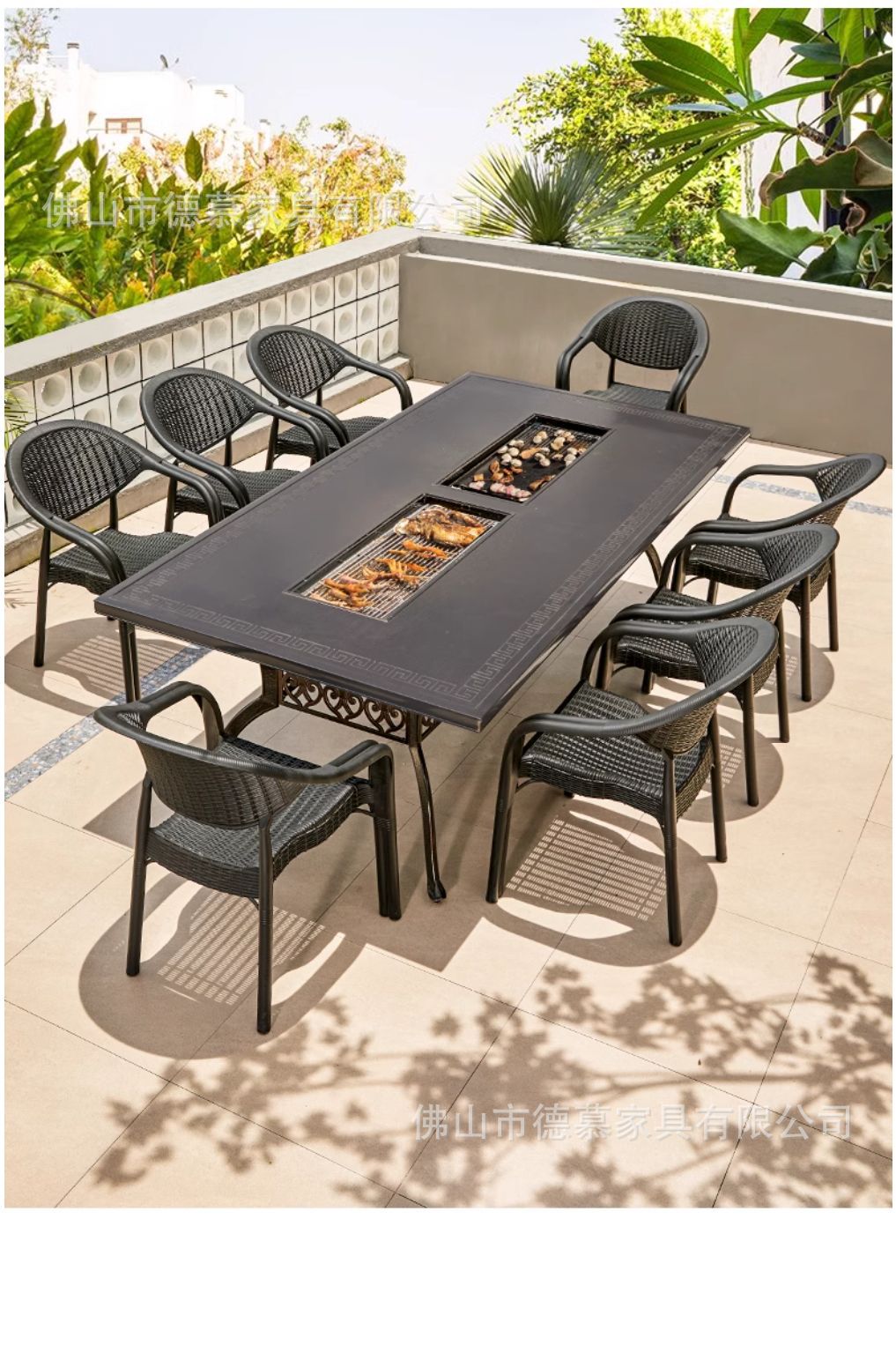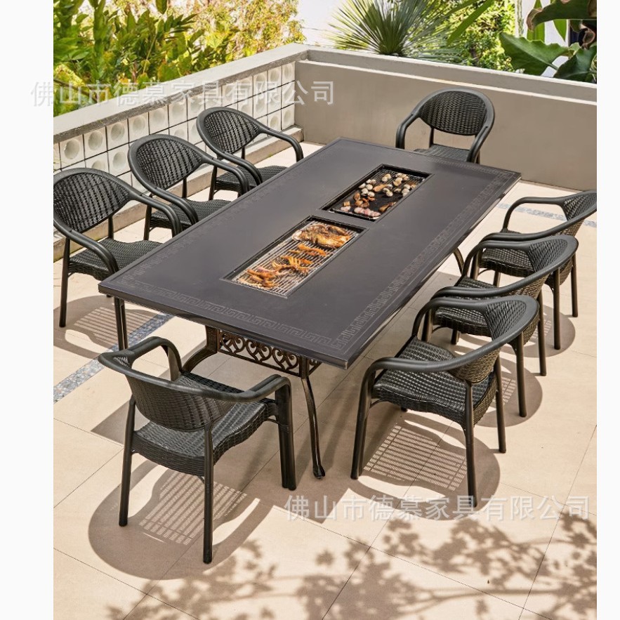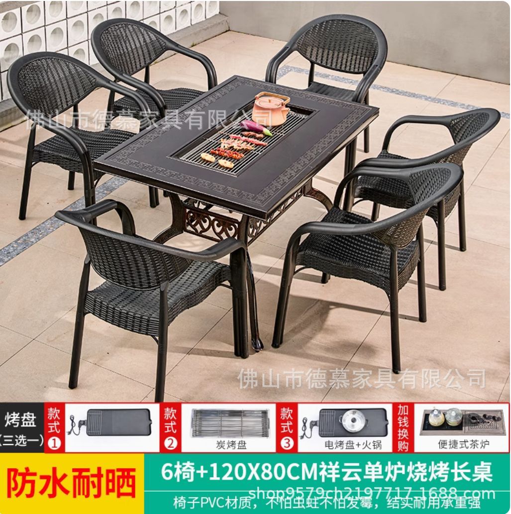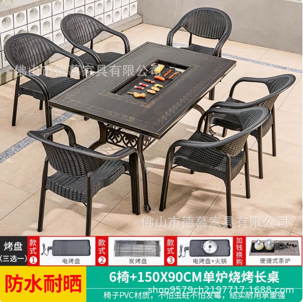 야외 안뜰 정원 바베큐 테이블 테라스 알루미늄 합금 가정용 캐주얼 다이닝 테이블 전기 그릴 숯 그릴 이중 목적 야외 테이블 및 의자