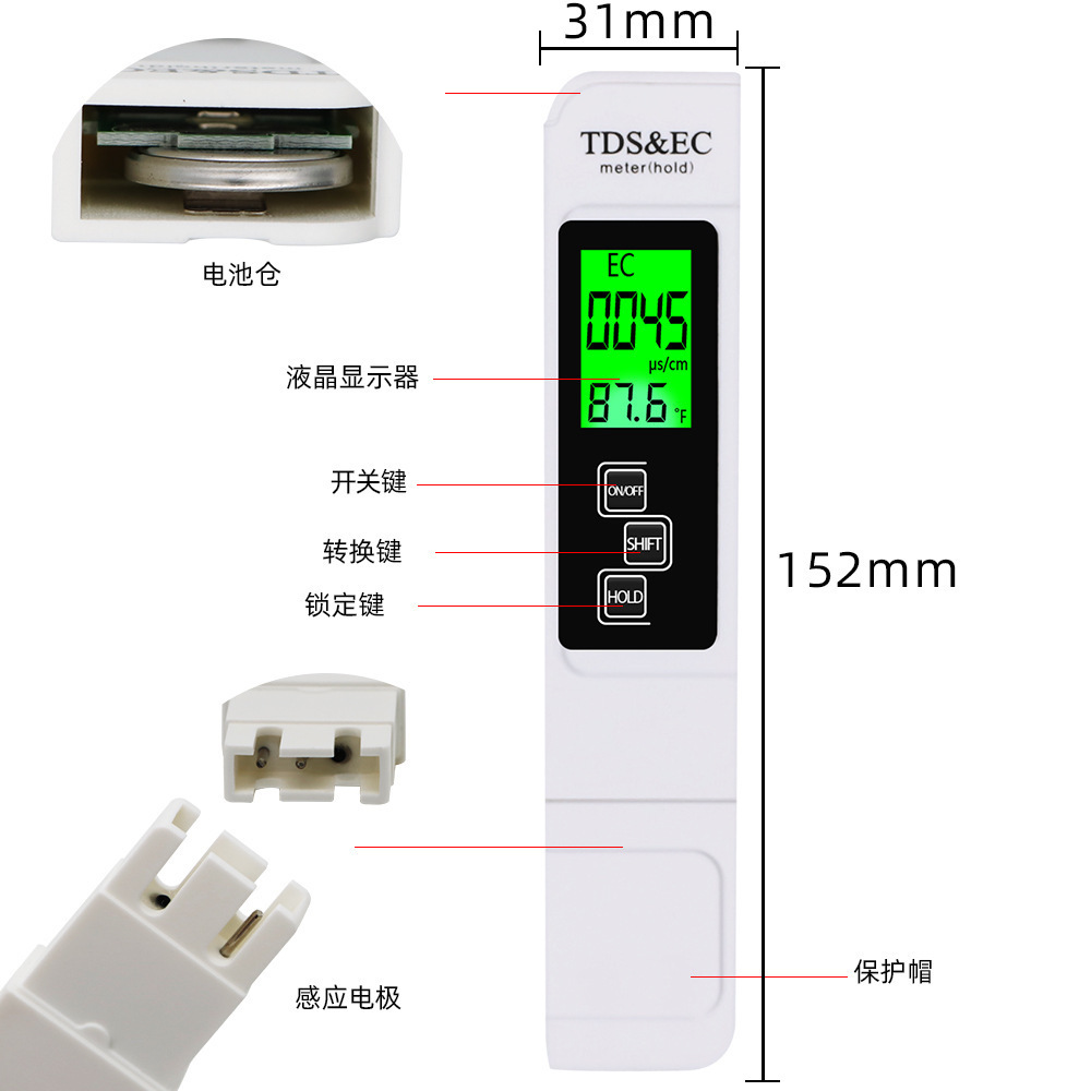 백라이트 수질 테스트 펜 고정밀 가정용 수돗물 다기능 테스트 장비 식수 품질 모니터링 펜