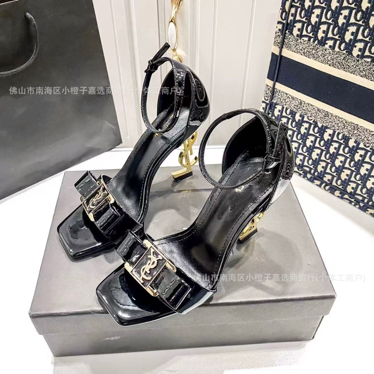 2025년 여름 양수림 메탈 버클 레터링 힐 하이힐 여성용 스틸레토 스퀘어토 원스트랩 샌들 특수형 힐스토어 가기