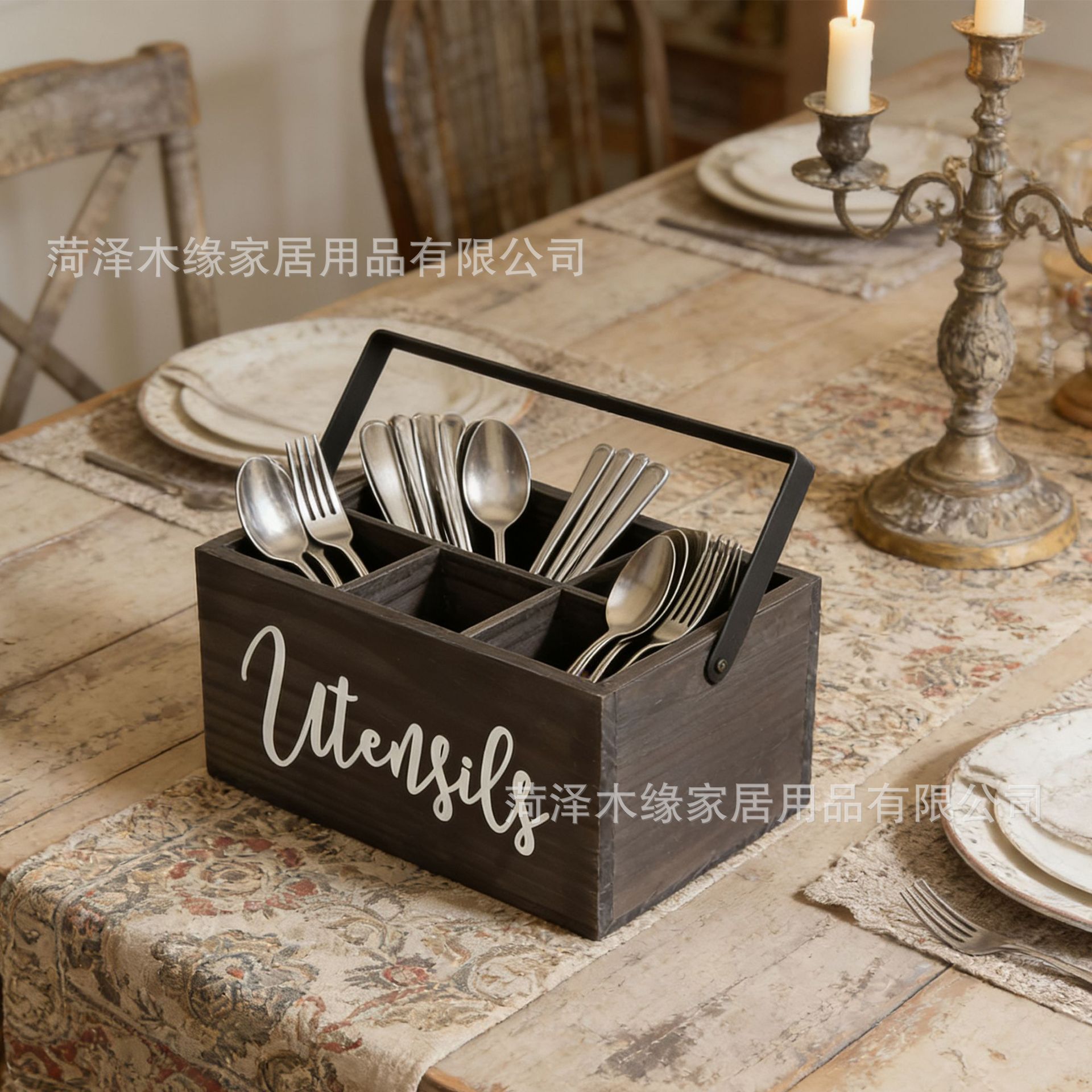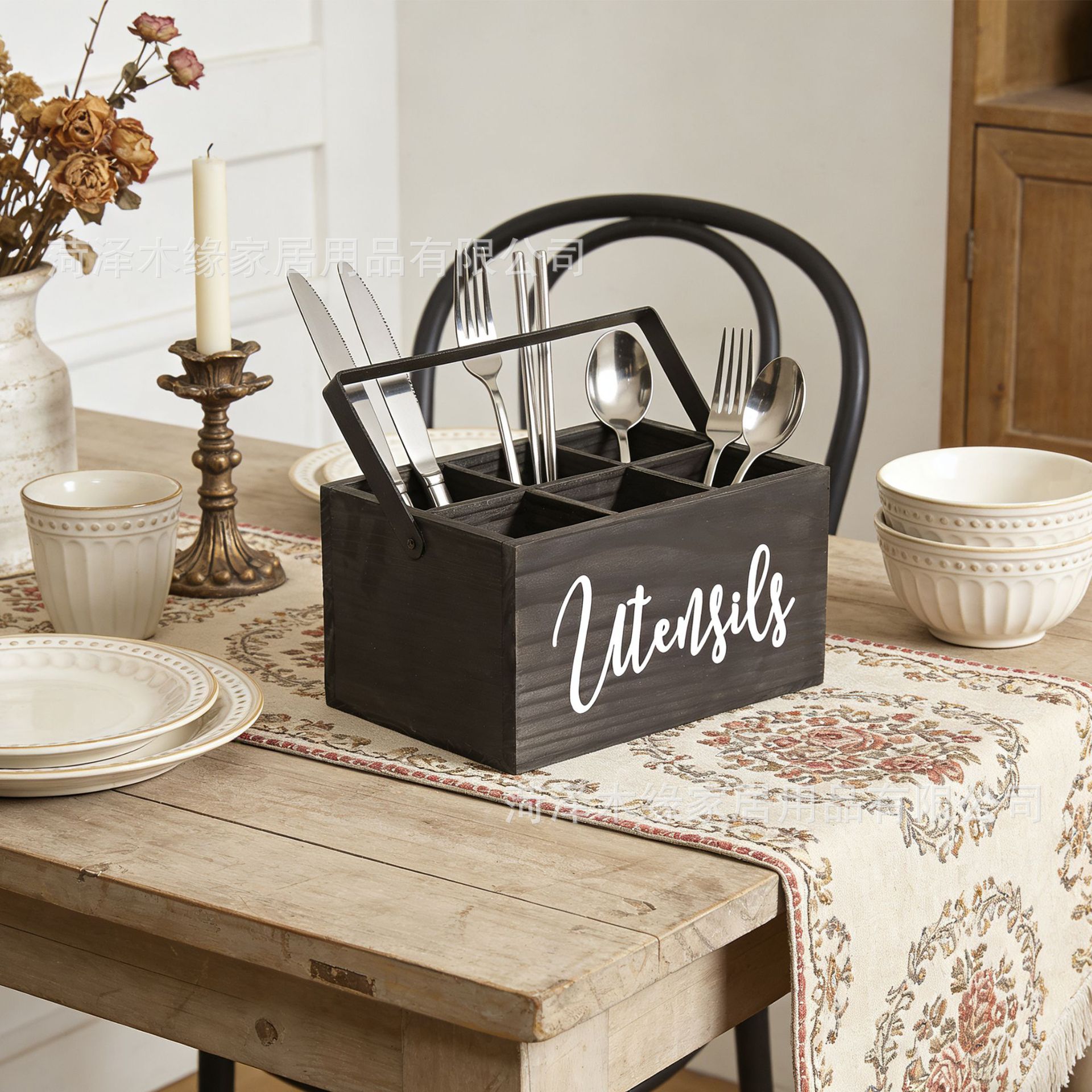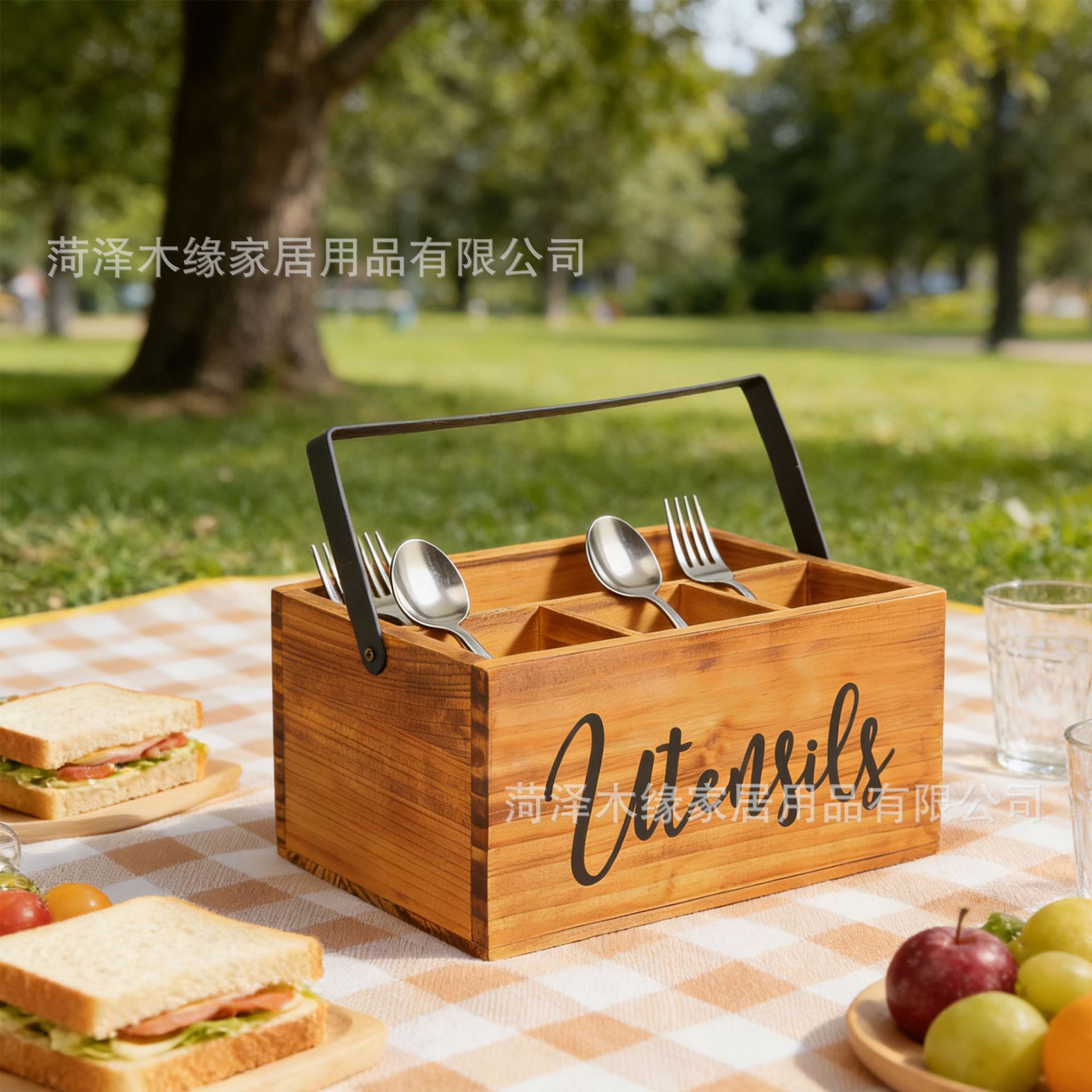 【재고 있음, 빠른 배송】나무로 만든 휴대용 칸막이형 주방 식기류, 나이프, 포크, 양념, 주류, 음료 보관함