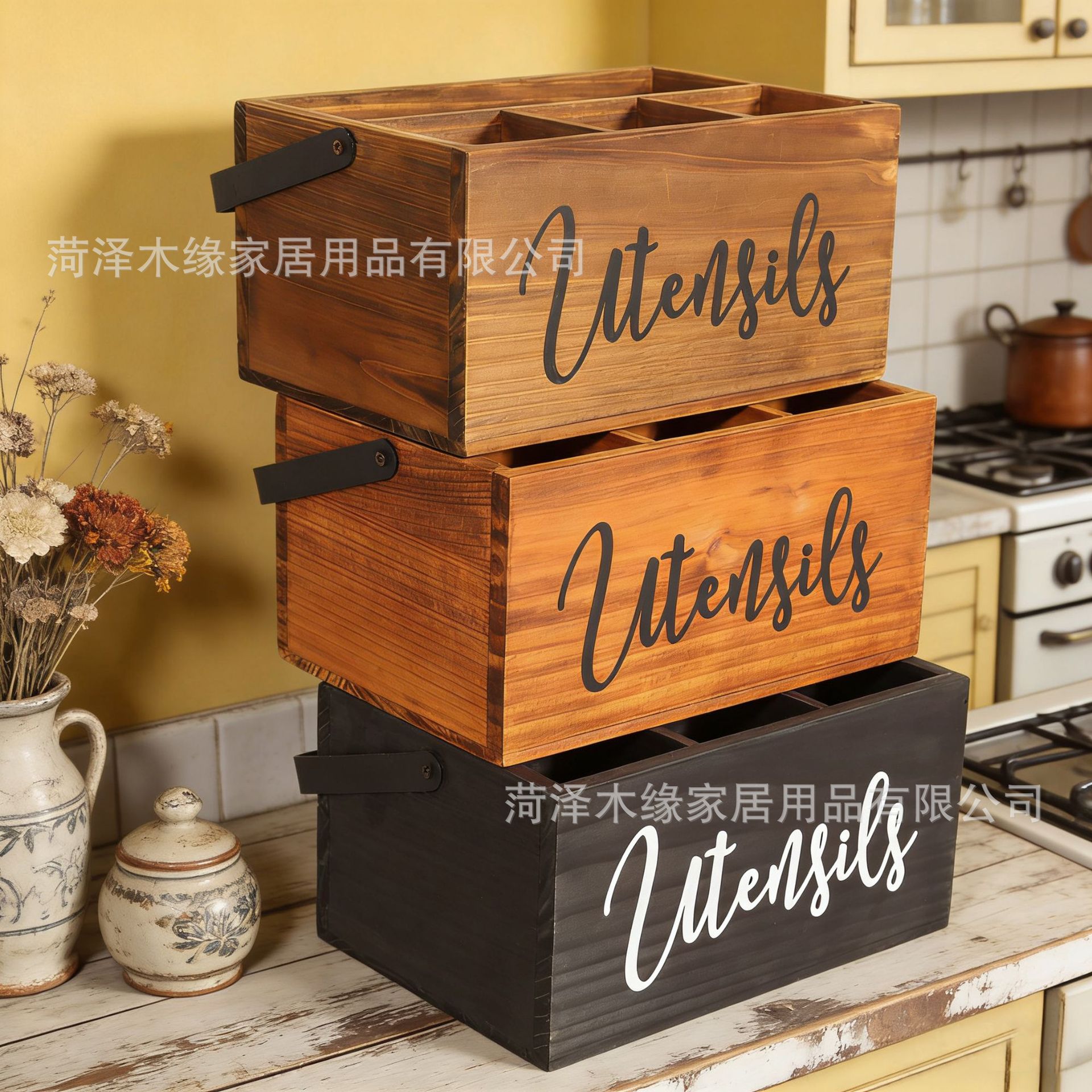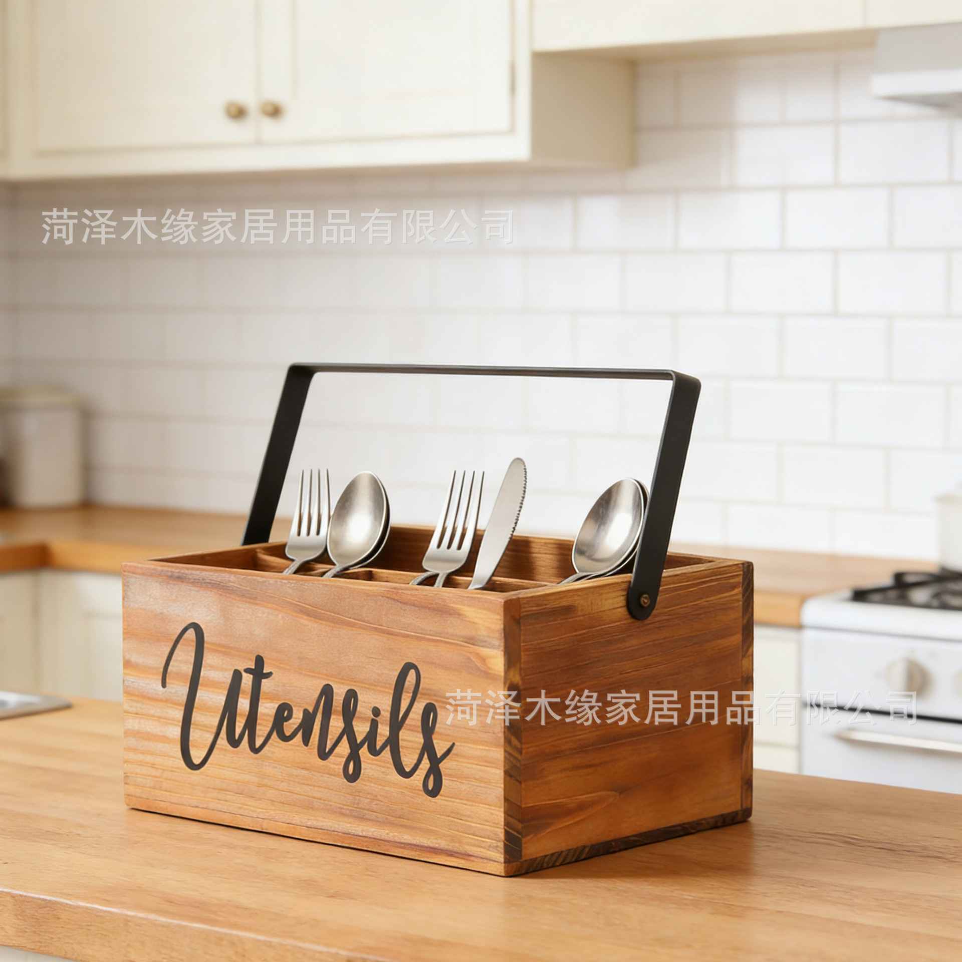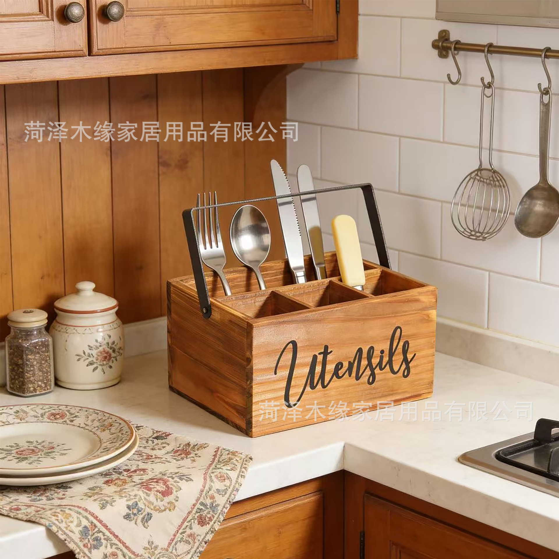 【재고 있음, 빠른 배송】나무로 만든 휴대용 칸막이형 주방 식기류, 나이프, 포크, 양념, 주류, 음료 보관함