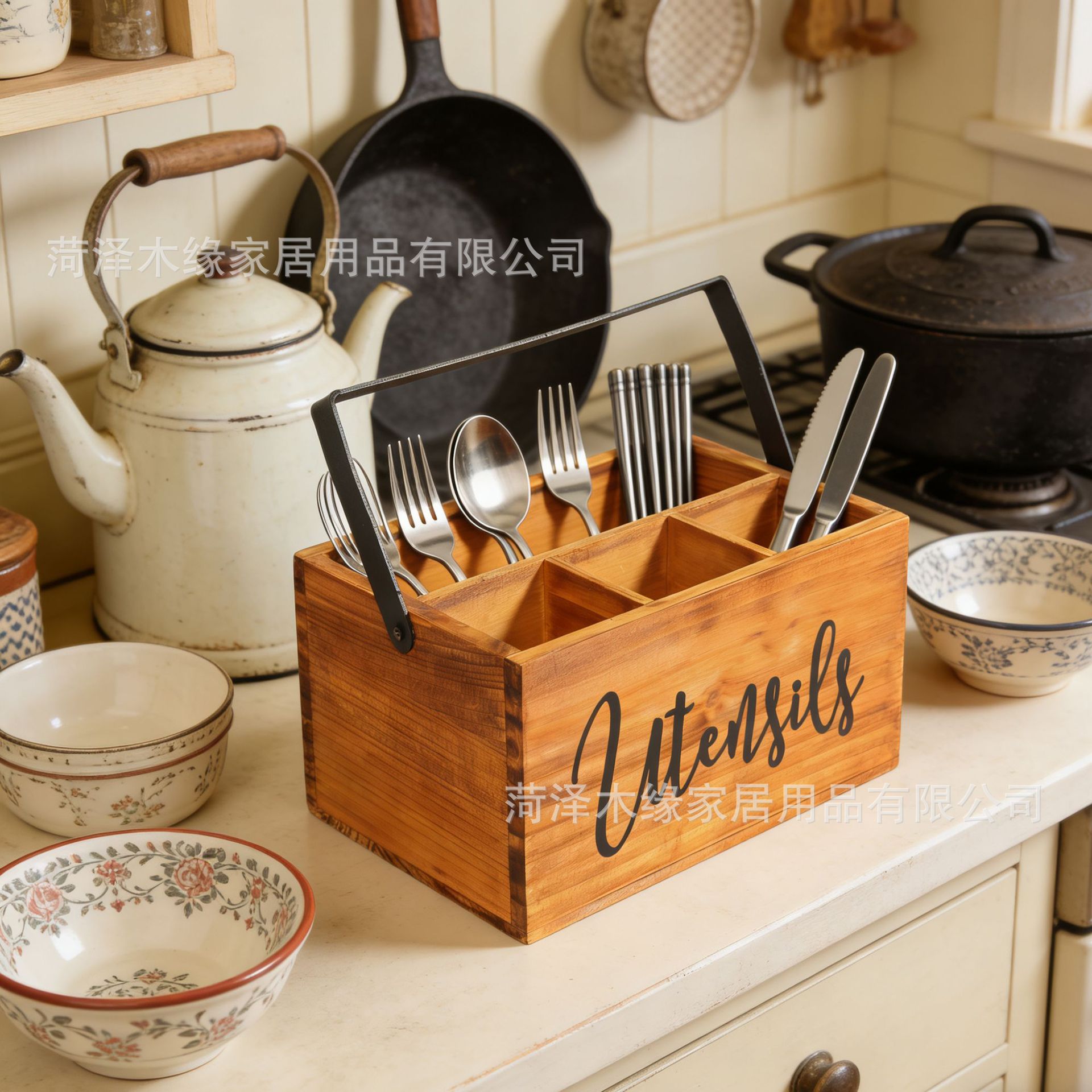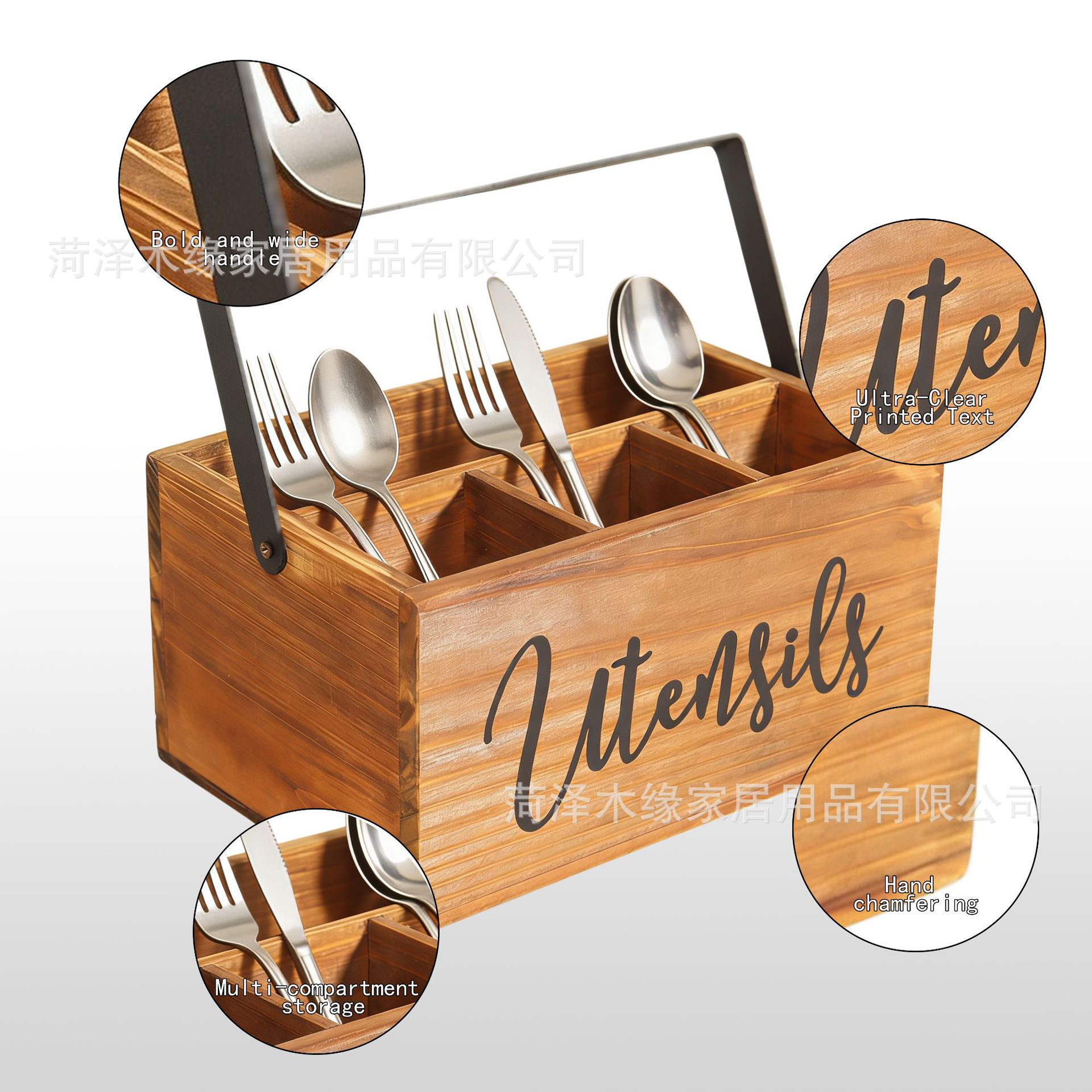 【재고 있음, 빠른 배송】나무로 만든 휴대용 칸막이형 주방 식기류, 나이프, 포크, 양념, 주류, 음료 보관함스토어 가기