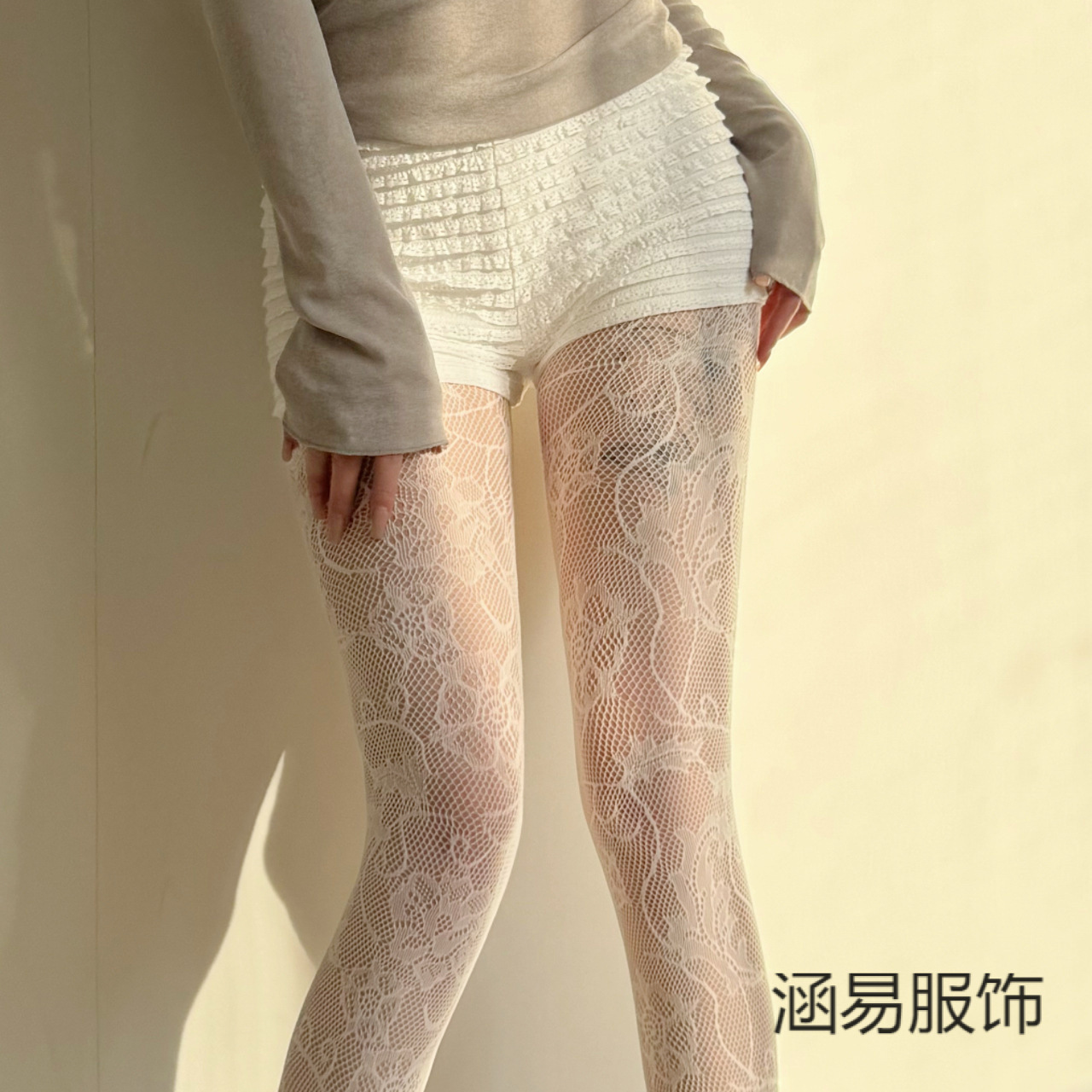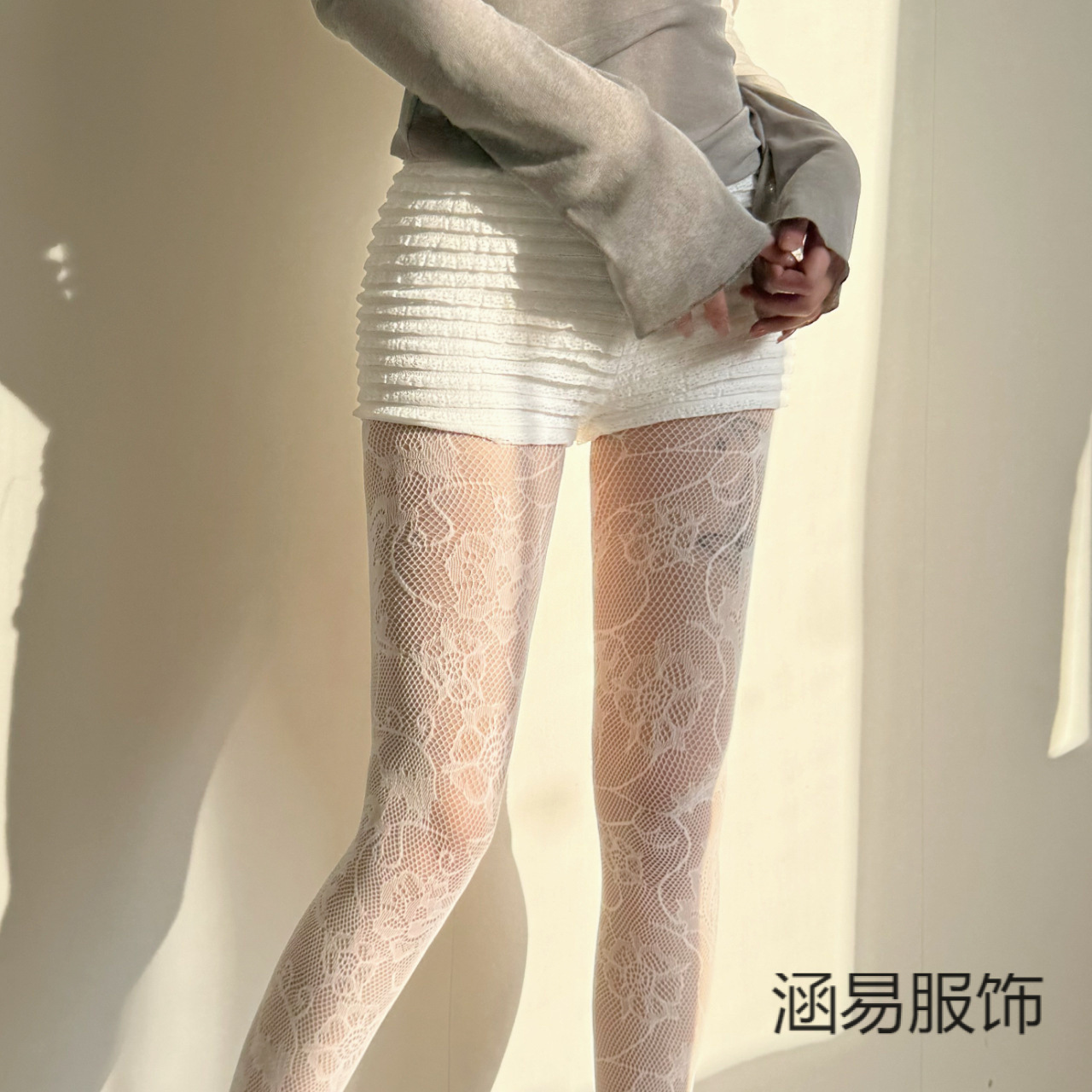 여름 순수한 욕망 스타일 jk 바닥 팬티 스타킹 흰색 실크 꽃 덩굴 래핑 레이스 망사 양말 안티 걸림 고 탄성스토어 가기