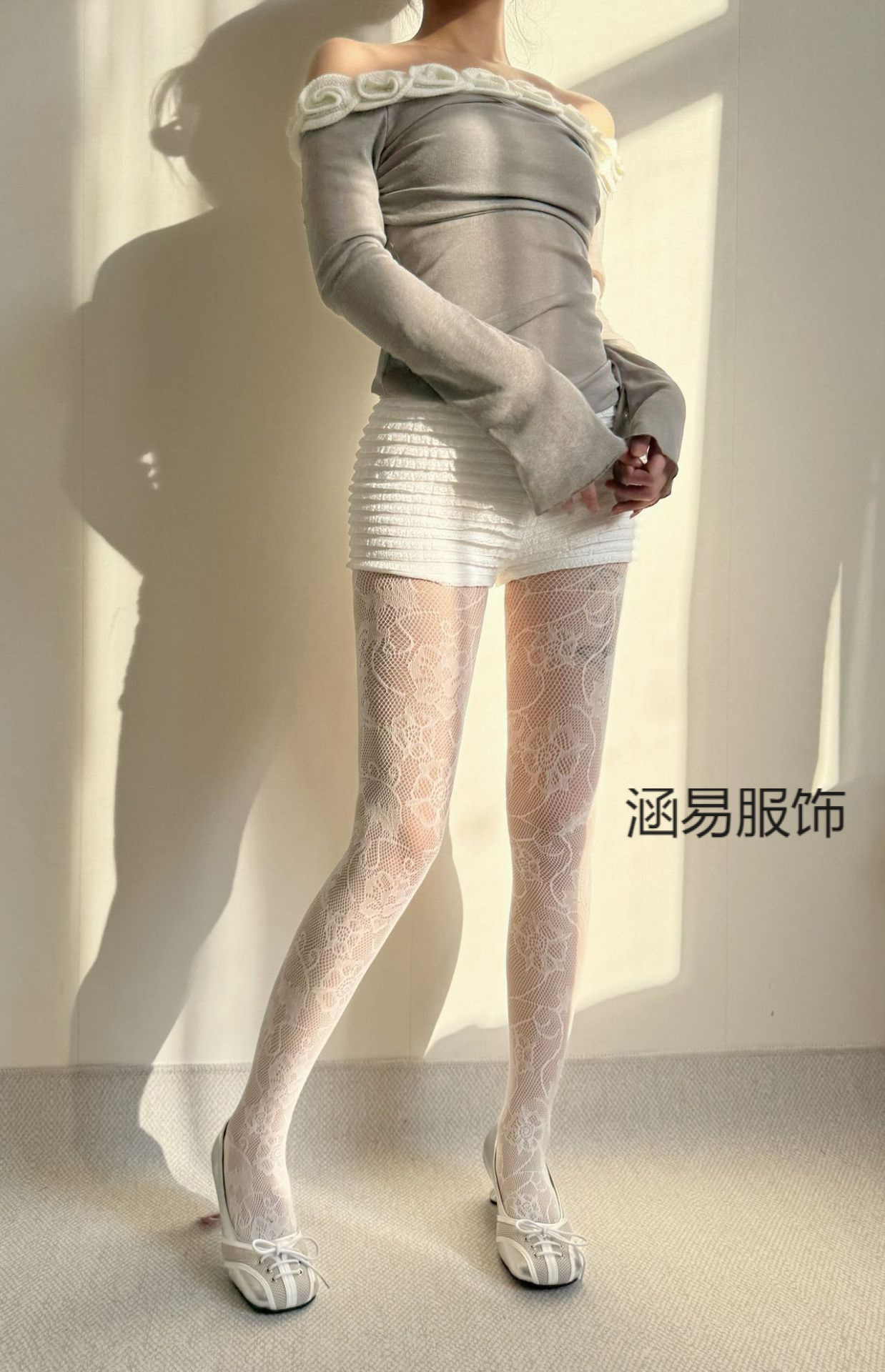 여름 순수한 욕망 스타일 jk 바닥 팬티 스타킹 흰색 실크 꽃 덩굴 래핑 레이스 망사 양말 안티 걸림 고 탄성