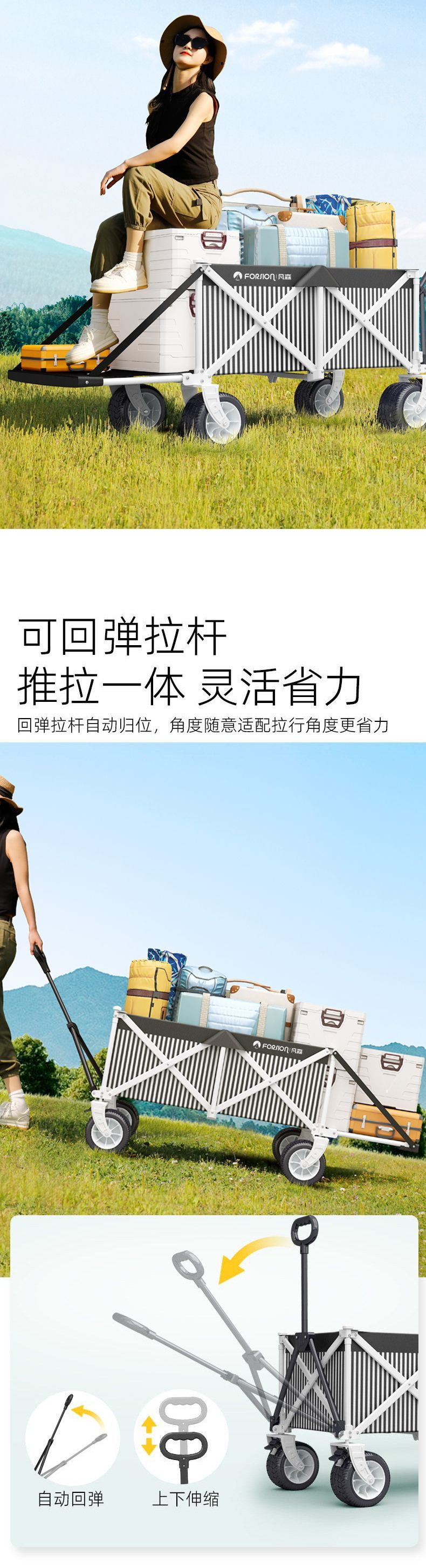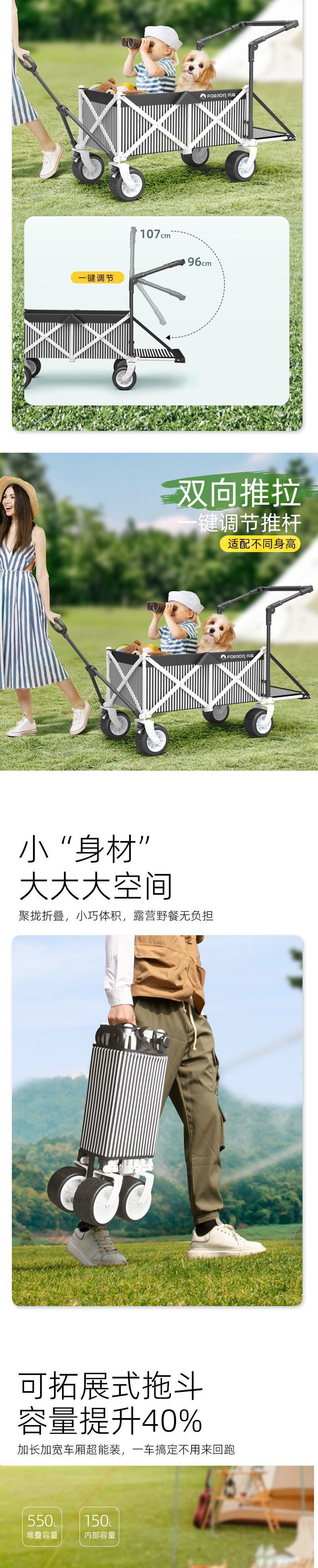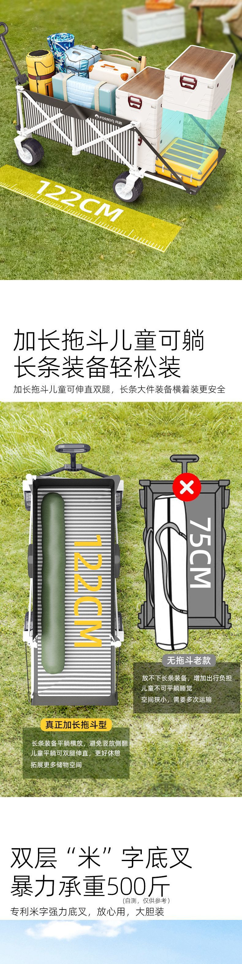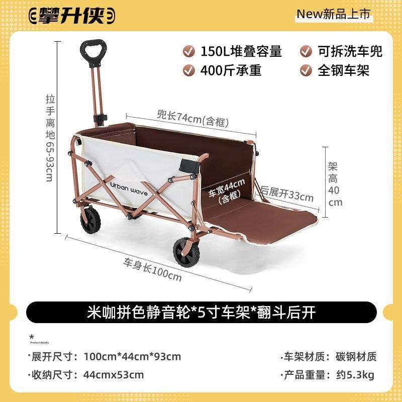 캠핑카 캠프 카트 야외 접이식 캠프 트롤리 어린이 리클라이닝 여행 피크닉 트레일러 후면 개방형스토어 가기