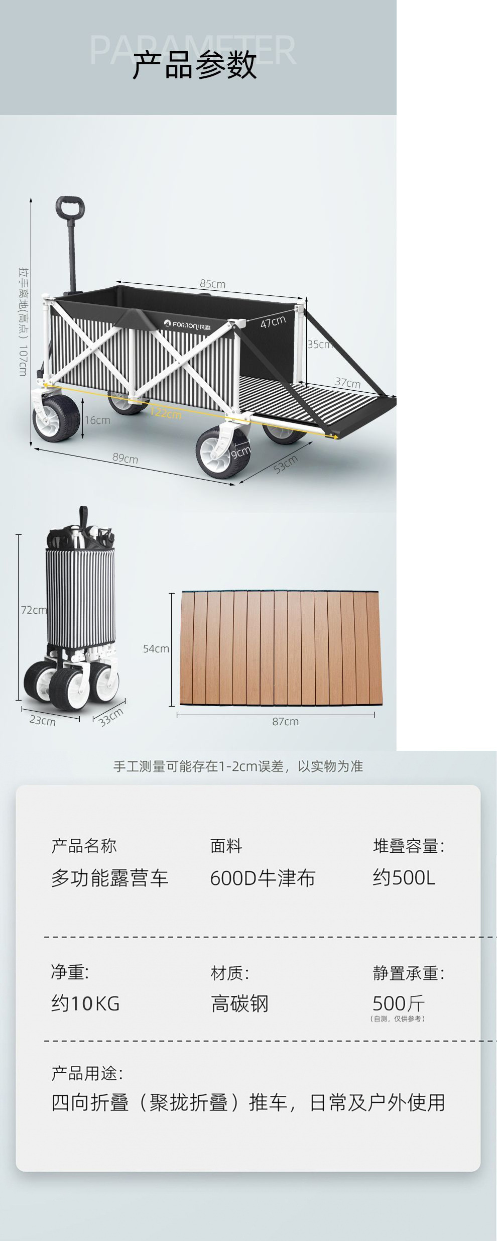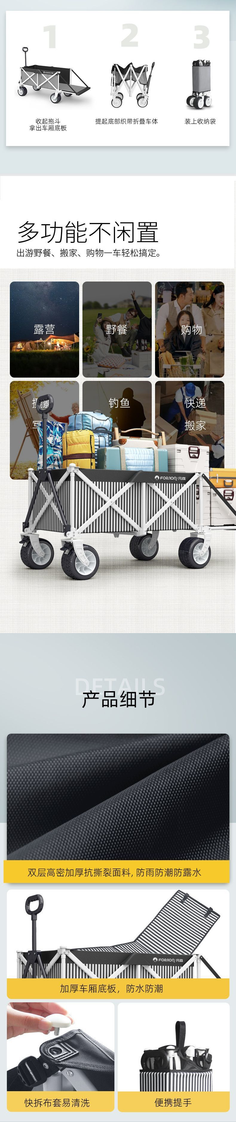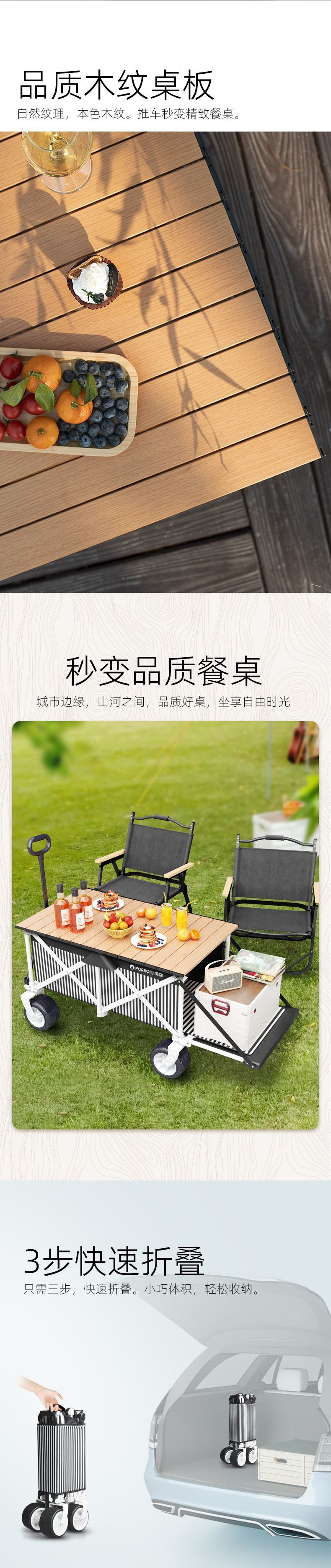 캠핑카 캠프 카트 야외 접이식 캠프 트롤리 어린이 리클라이닝 여행 피크닉 트레일러 후면 개방형스토어 가기
