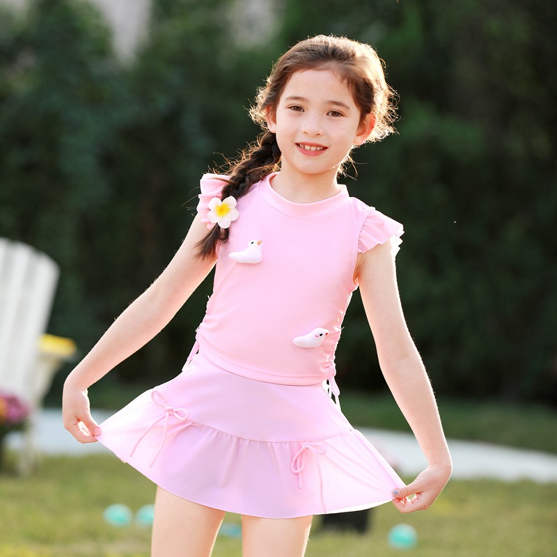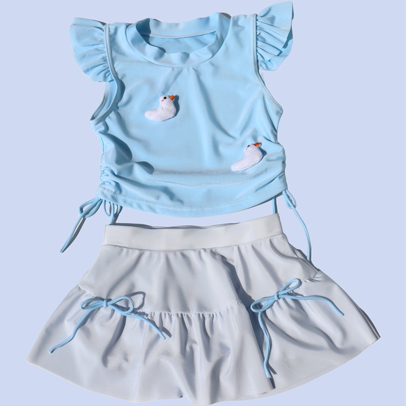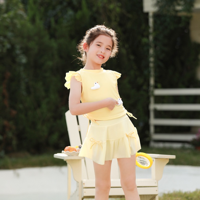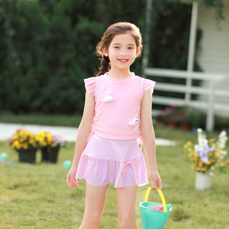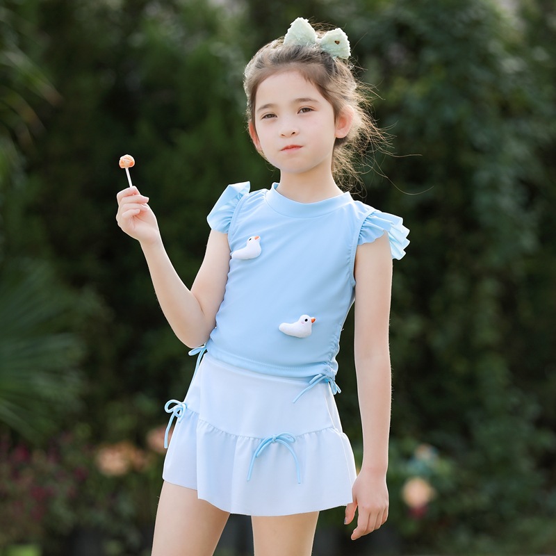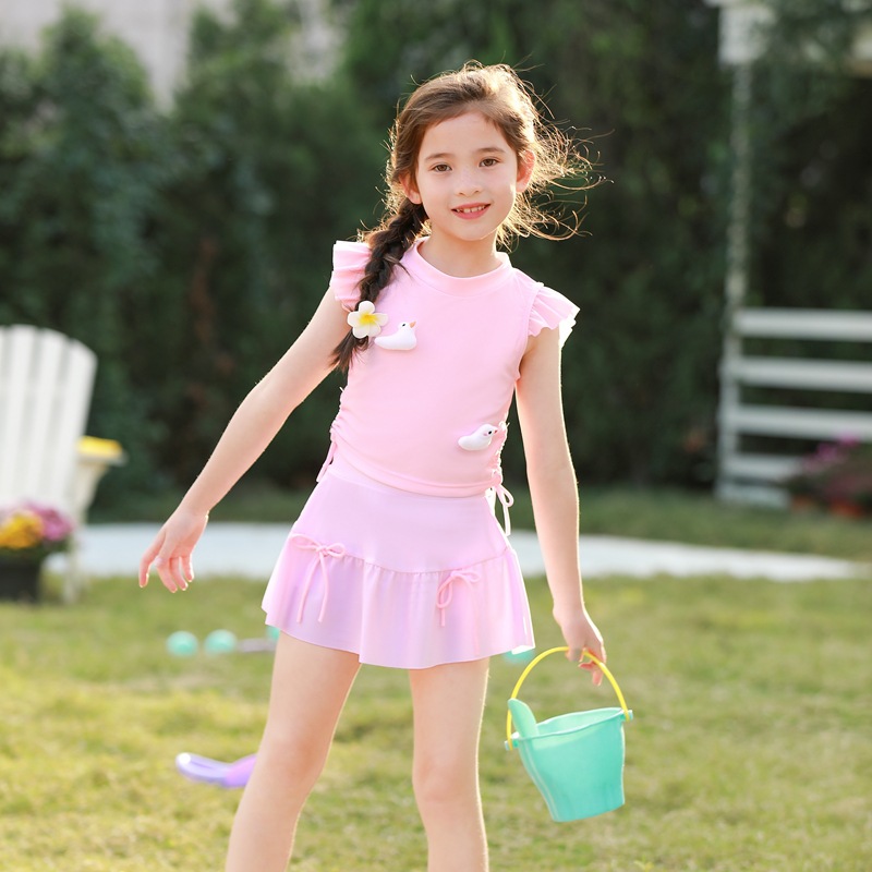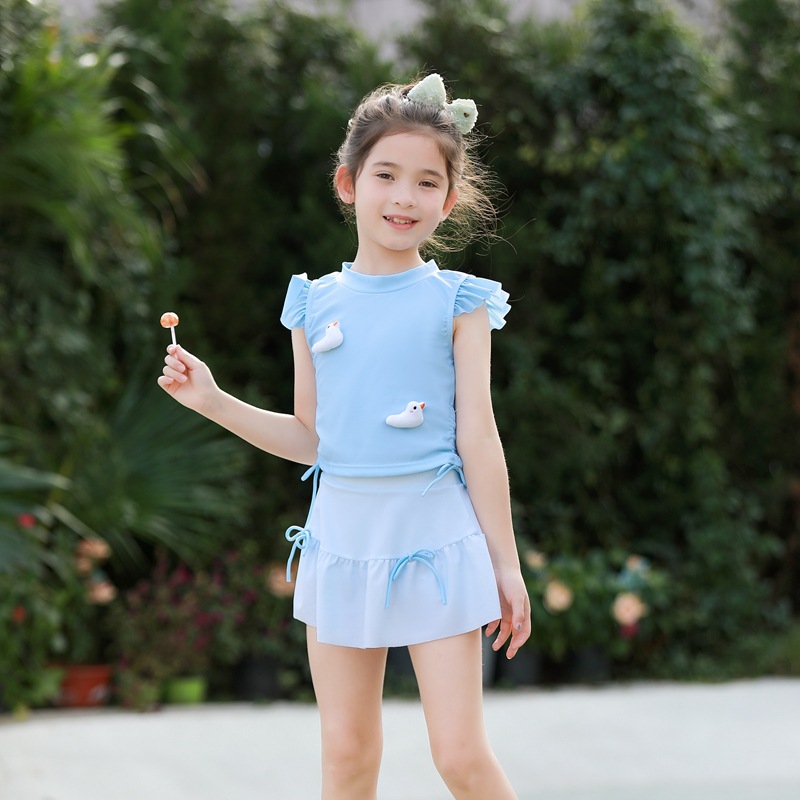 어린이 수영복 여아 중소 어린이 새 서양식 아기 소녀 분할 수영복 어린이 오리 비행 슬리브 수영복