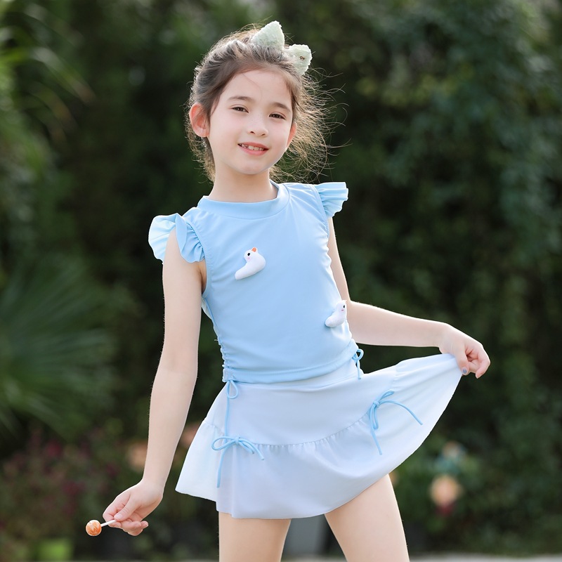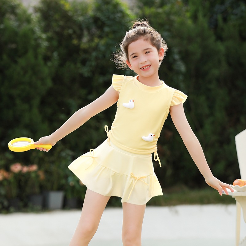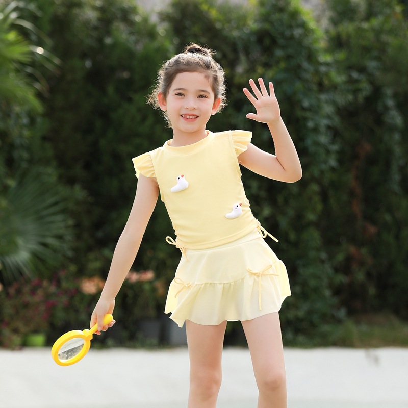 어린이 수영복 여아 중소 어린이 새 서양식 아기 소녀 분할 수영복 어린이 오리 비행 슬리브 수영복스토어 가기