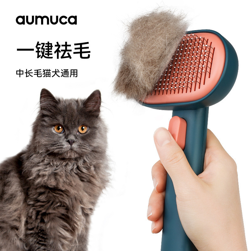 Aumuca 애완 동물 고양이 머리 개 머리 빗 깊은 머리 제거 개 브러시 고양이 브러시 긴 브러시 고양이 헤어 클리너