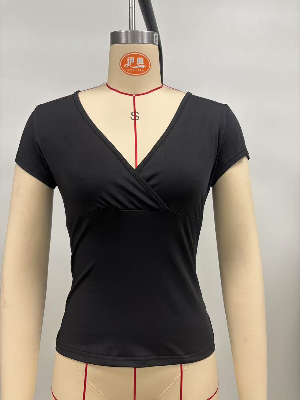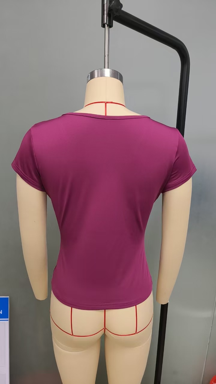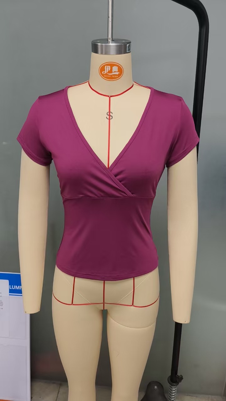 아마존 크로스보더 2026 봄/여름 Y2K 솔리드 컬러 슬림핏 V넥 반팔 티셔츠, 해외 무역 유럽/미국 여성 상의
