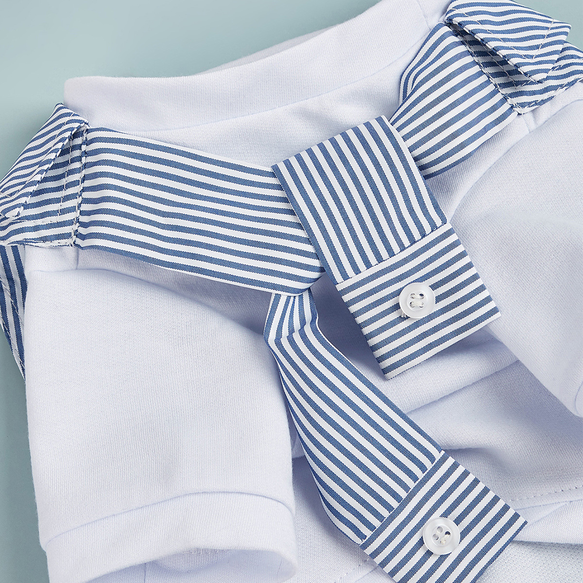 设计理念:本产品采用了衬衫面料与针织的结合,这款是春夏季的休闲风,带你家的宝贝一起出游吧