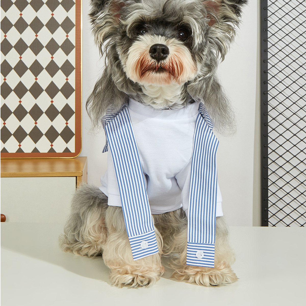 2025 새로운 중소 레저 성격 패션 봄과 여름 가짜 투피스 셔츠 마이크로 탄성 애완 동물 조끼 티셔츠스토어 가기
