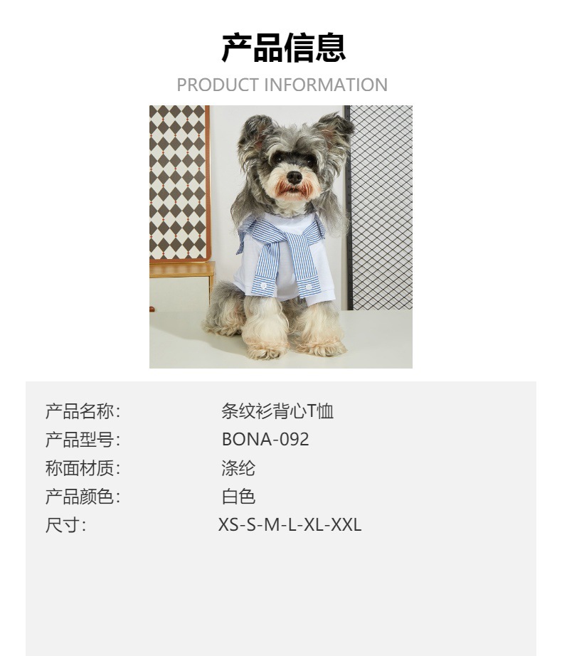 2025 새로운 중소 레저 성격 패션 봄과 여름 가짜 투피스 셔츠 마이크로 탄성 애완 동물 조끼 티셔츠