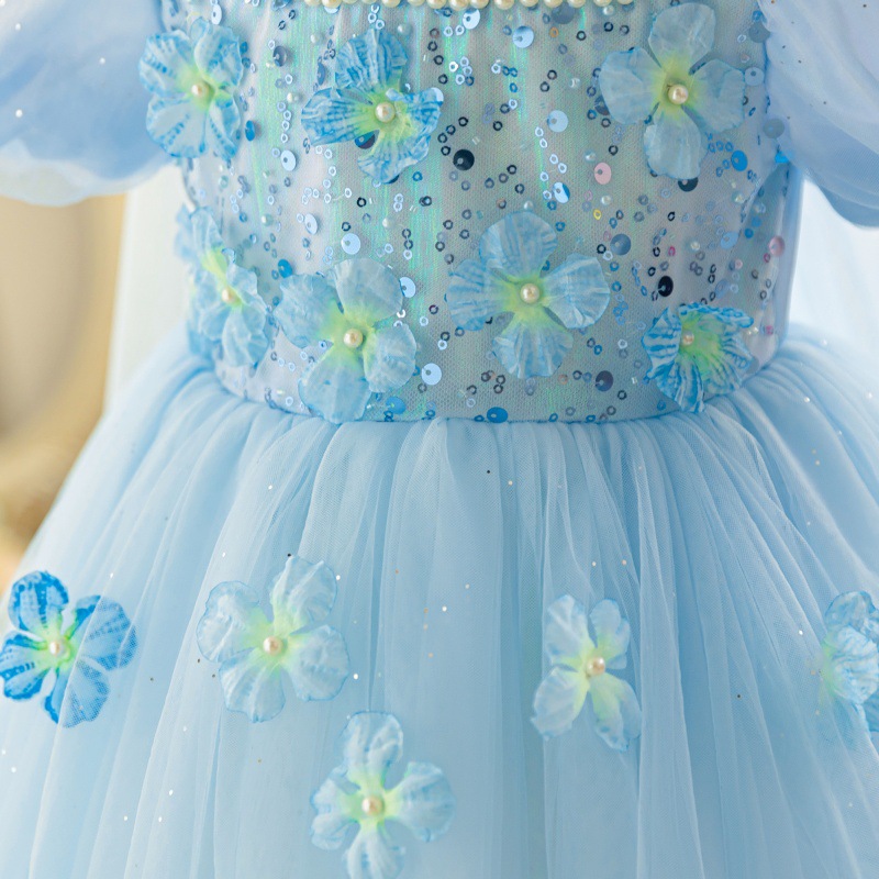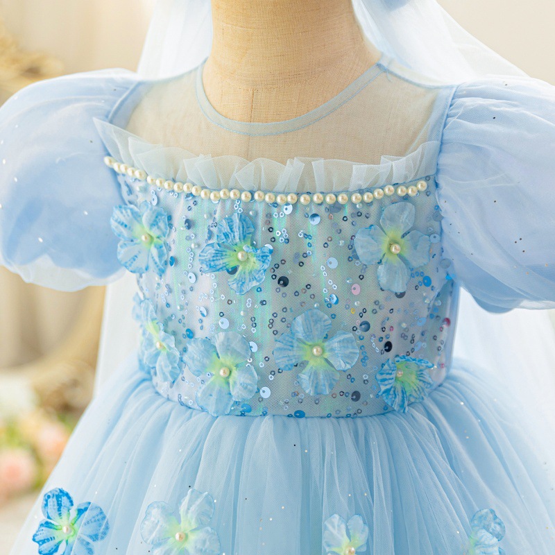 아기 소녀를위한 냉동 공주 아이샤 원피스 새로운 여름 아이샤 원피스 생일 원피스 세련된 짧은 소매 원피스
