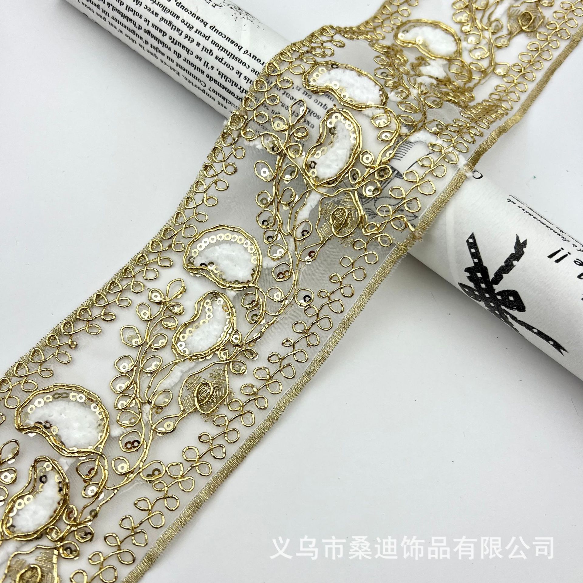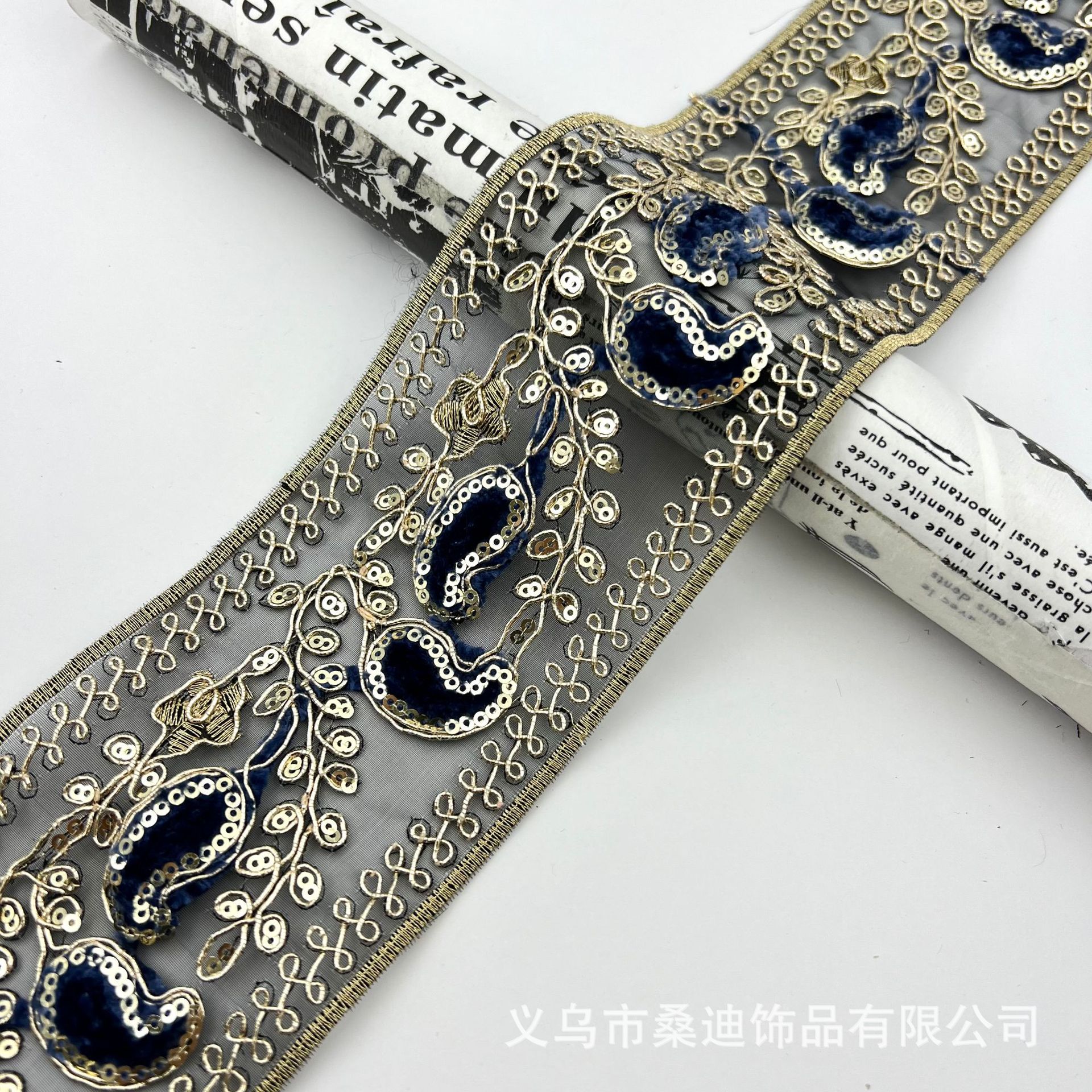 새로운 8CM 넓은 민족 자수 레이스 액세서리 스팽글 수제 DIY 벨트 신발 및 모자 머리 장식스토어 가기
