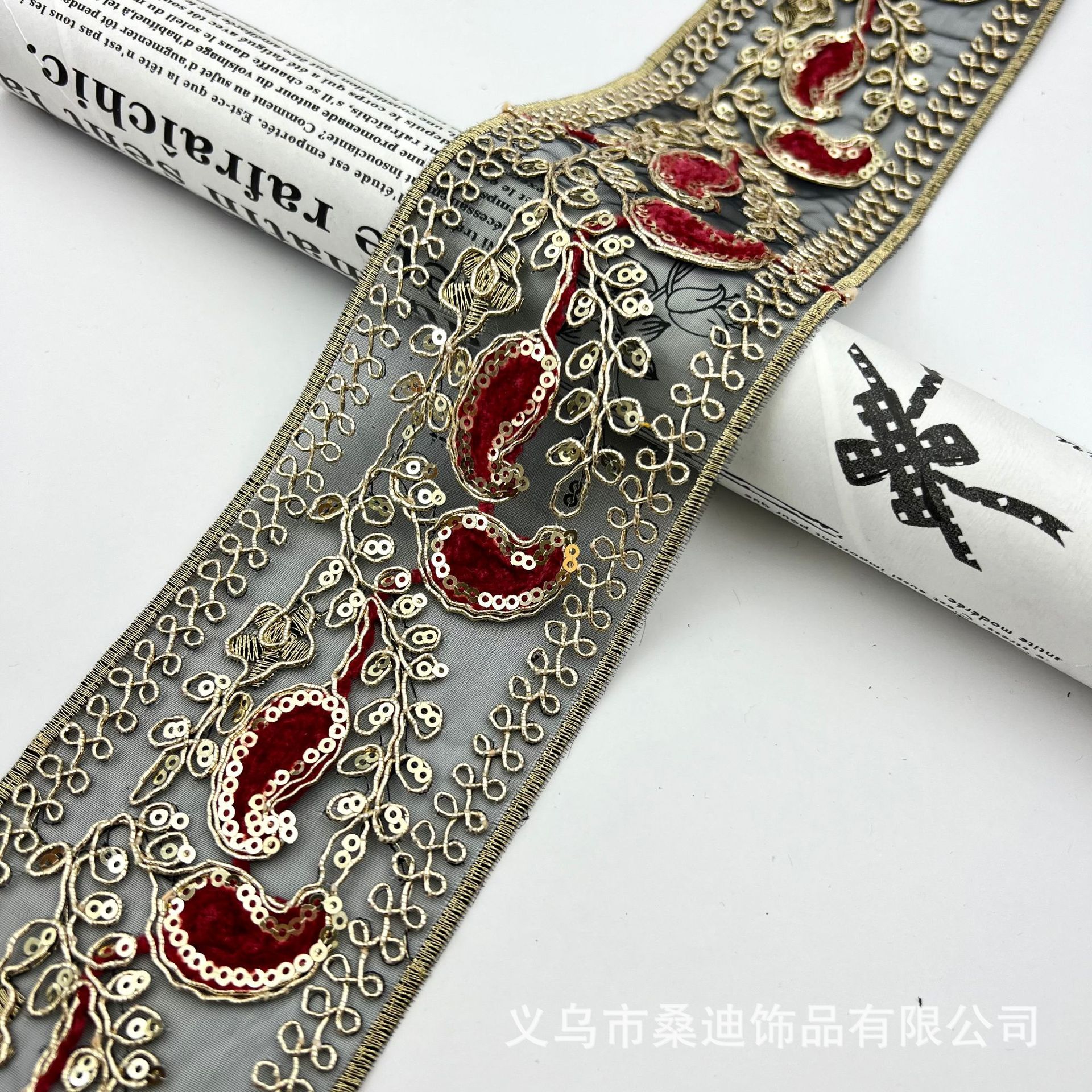 새로운 8CM 넓은 민족 자수 레이스 액세서리 스팽글 수제 DIY 벨트 신발 및 모자 머리 장식