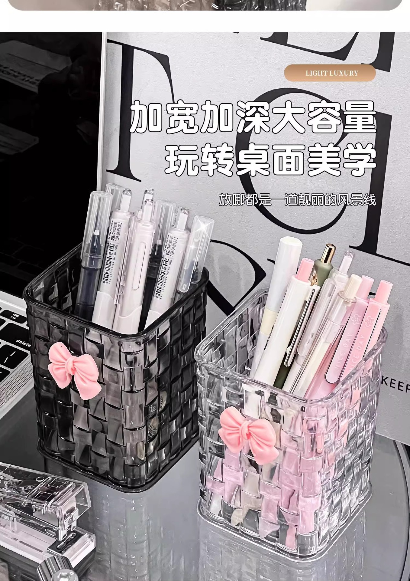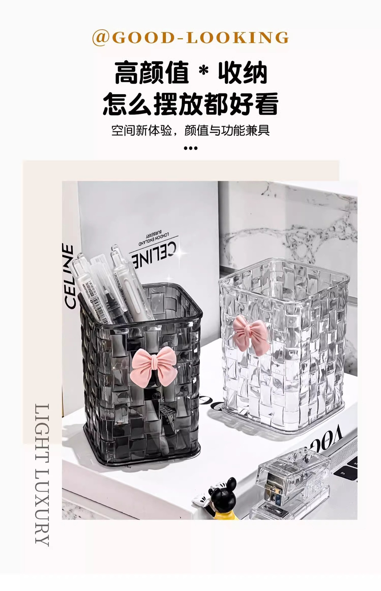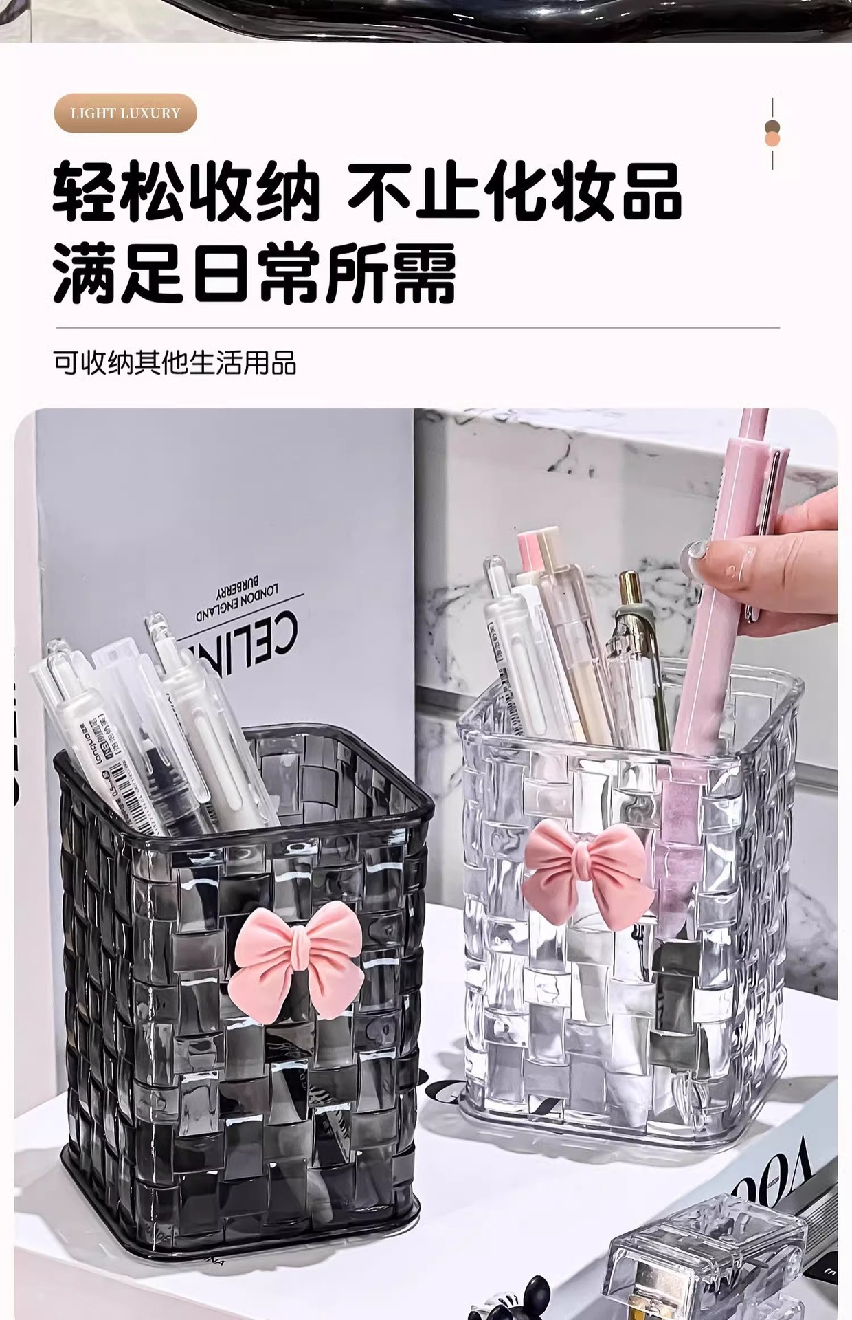 데스크탑 펜 홀더 저장 상자 학생 기숙사 책상 문구 보관 랙 투명 상자