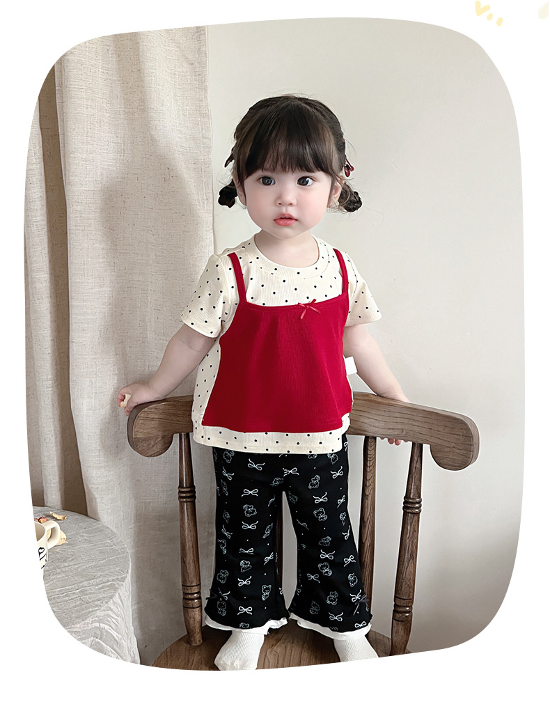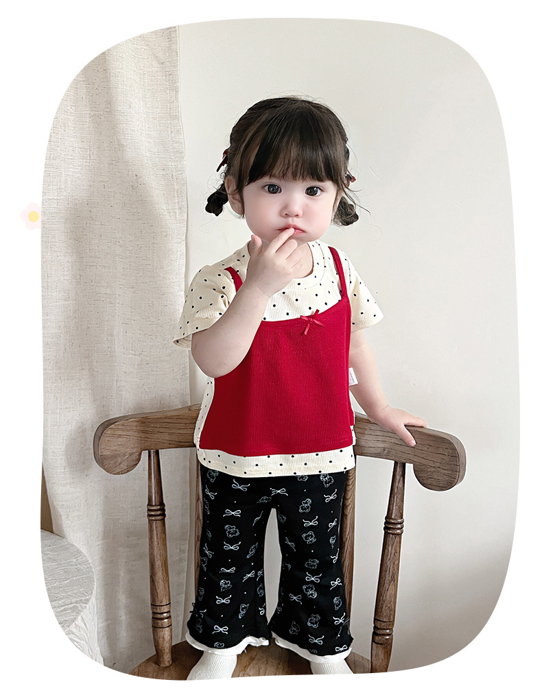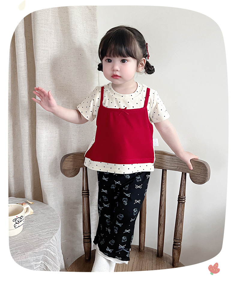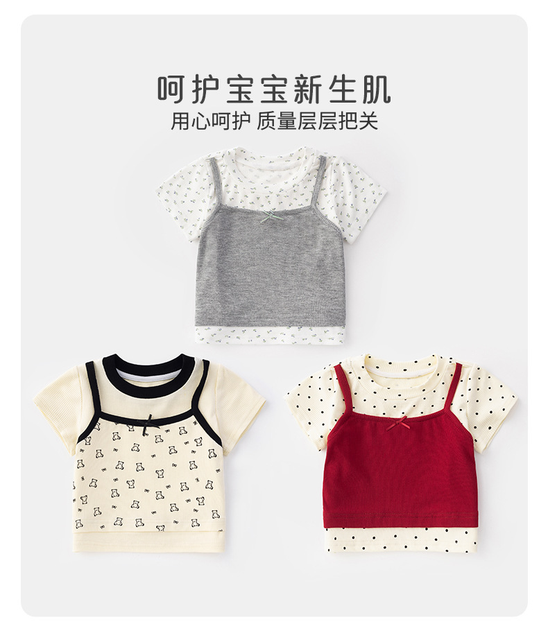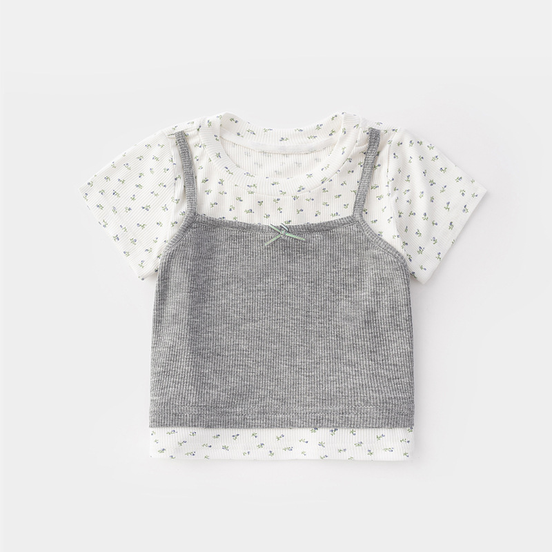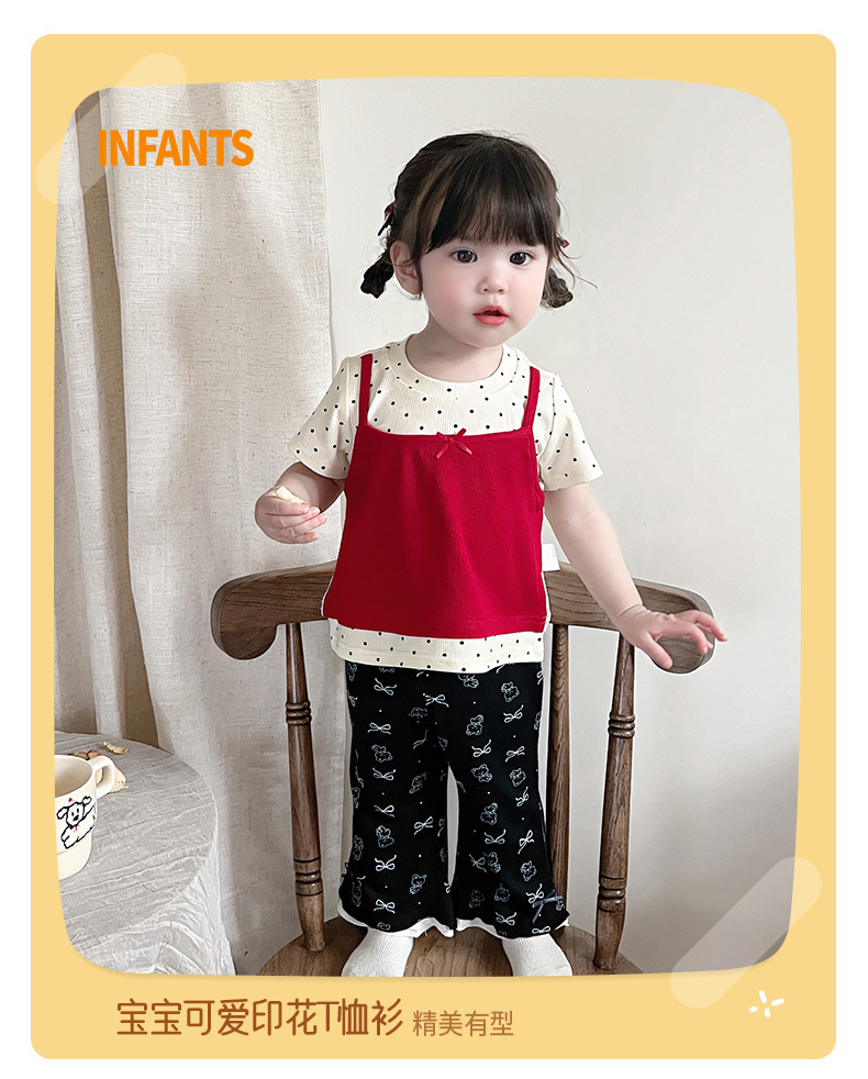 아기 여름 새로운 꽃 도트 프린트 2025 어린이 얇은 반팔 티셔츠 한국식 옷 5285스토어 가기