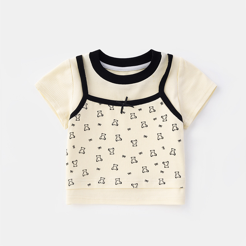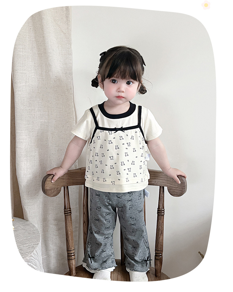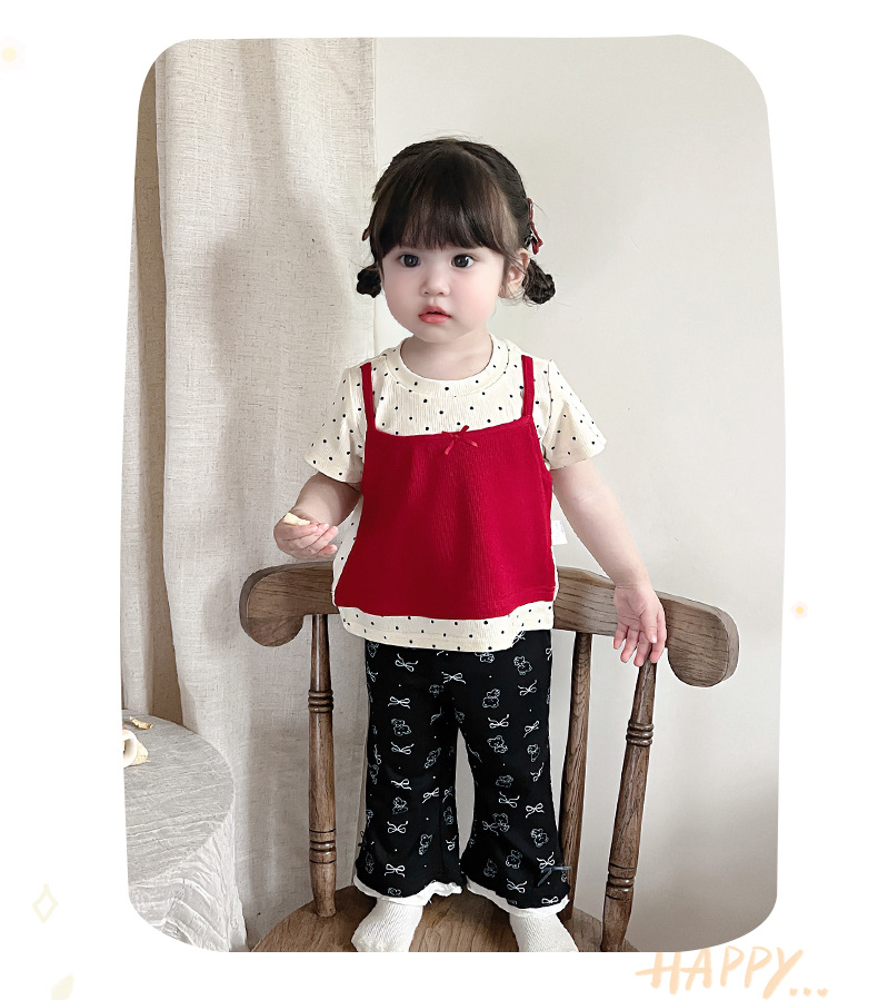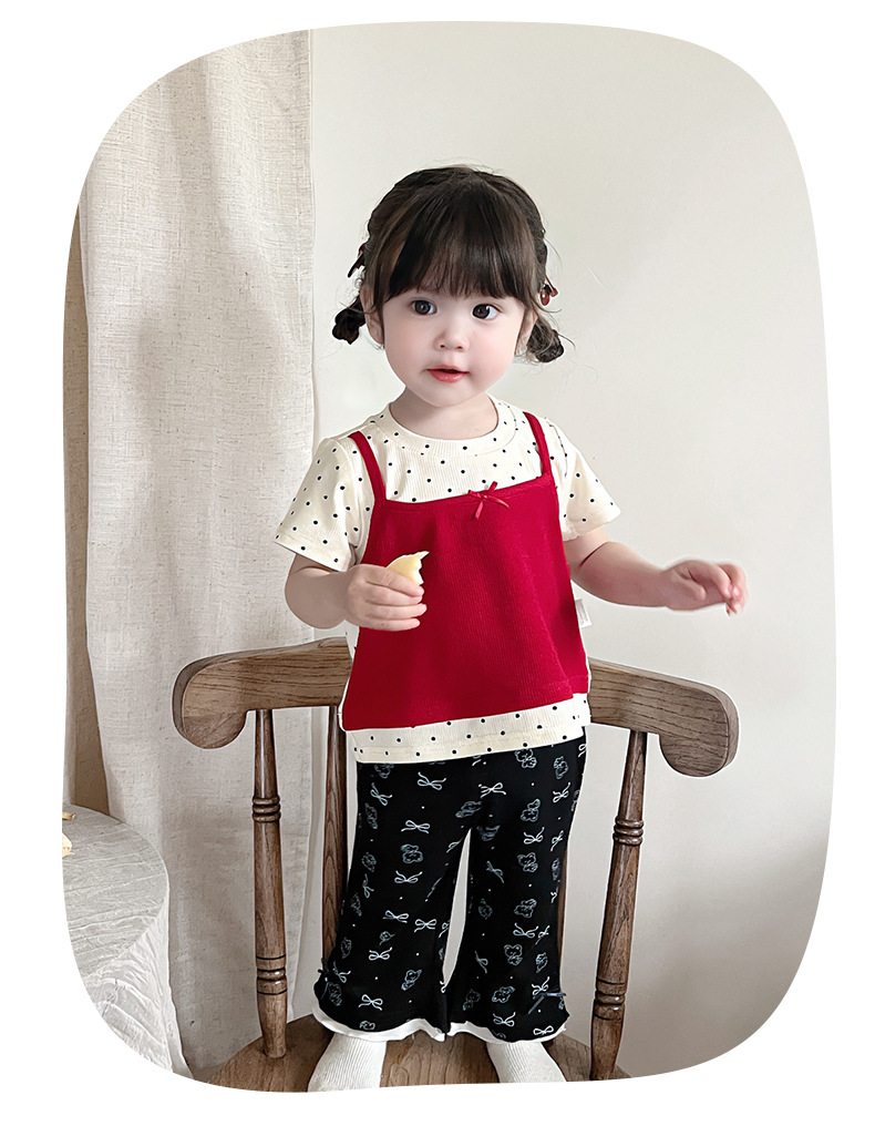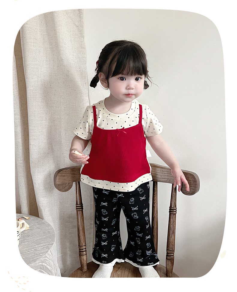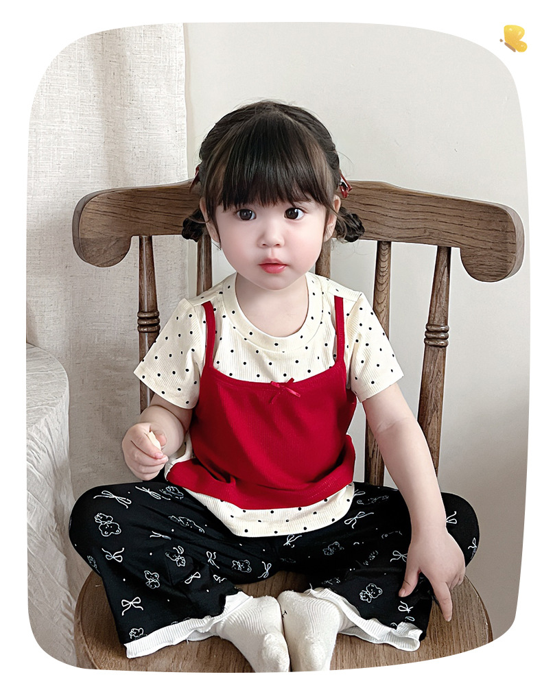 아기 여름 새로운 꽃 도트 프린트 2025 어린이 얇은 반팔 티셔츠 한국식 옷 5285스토어 가기